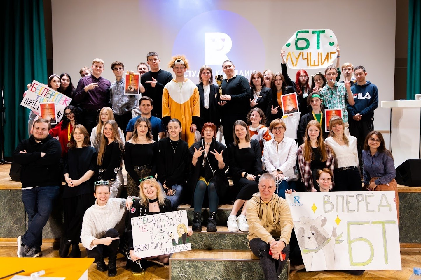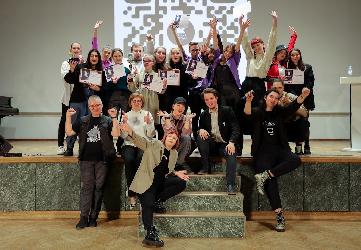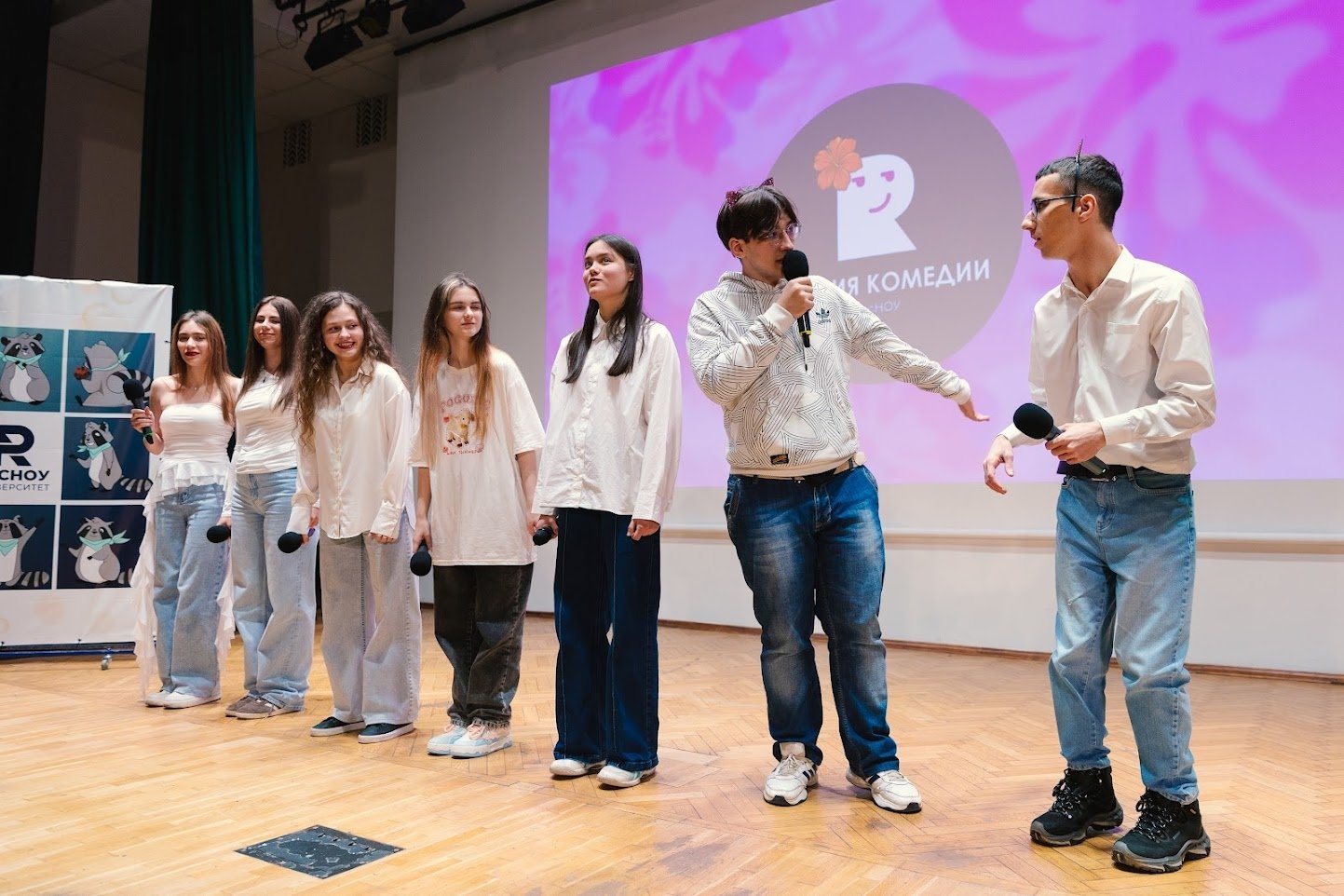 Студия комедии Российского нового университета включает в себя три направления: КВН, Stand Up и импровизация.