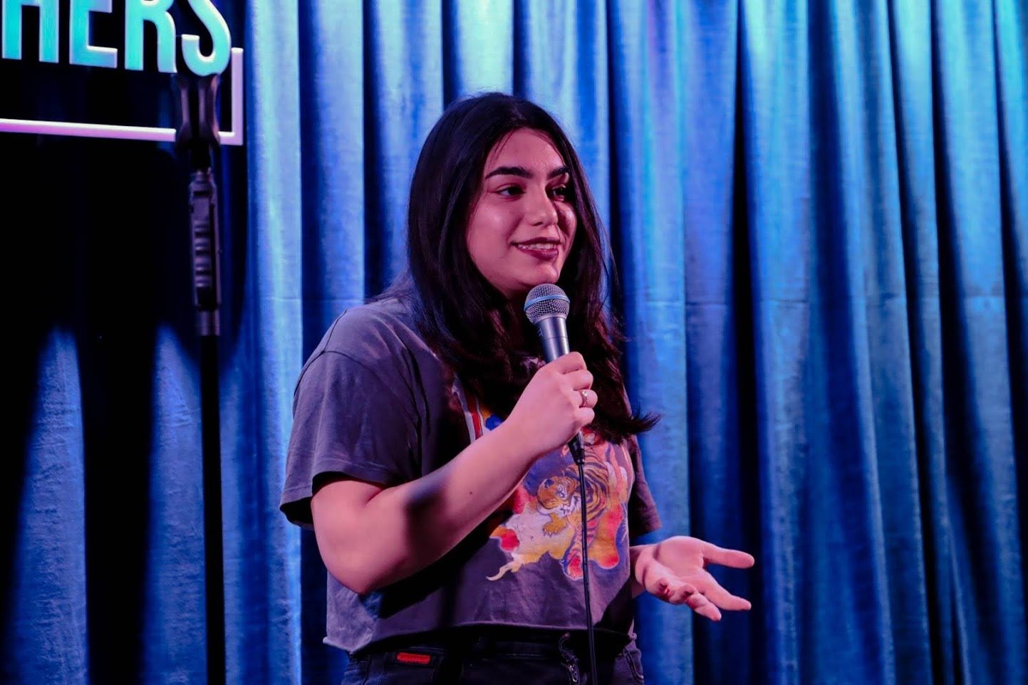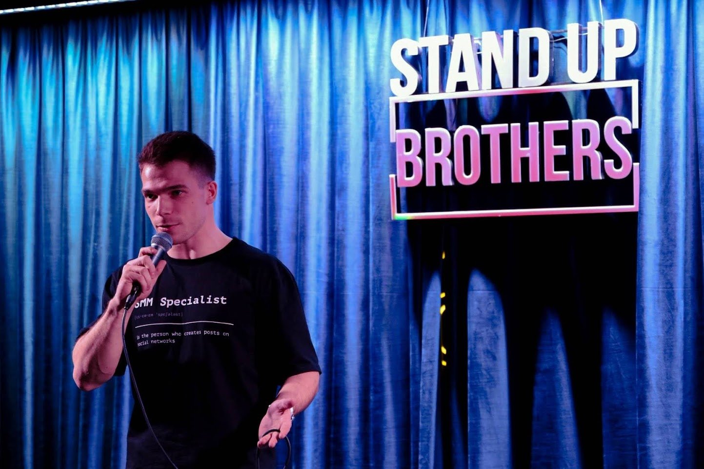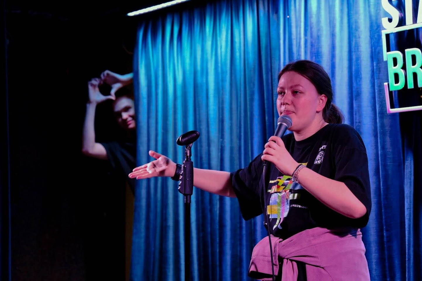 Во-вторых, площадка проведения открытых микрофонов. Это здорово, что молодым комикам дают возможность выступить на профессиональной сцене.