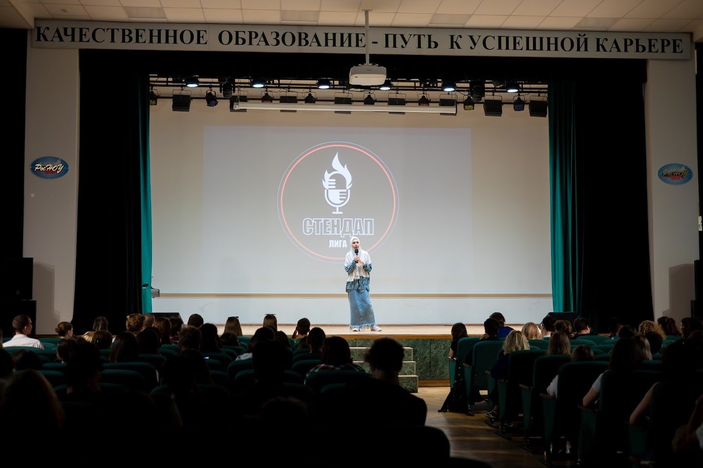 За год обучения в Стендап лиге РосНОУ я узнала много нового. Как правильно построить шутку, как применять юмор в повседневной жизни, как держаться на сцене. Для меня это оказалось чем-то новым и интересным.