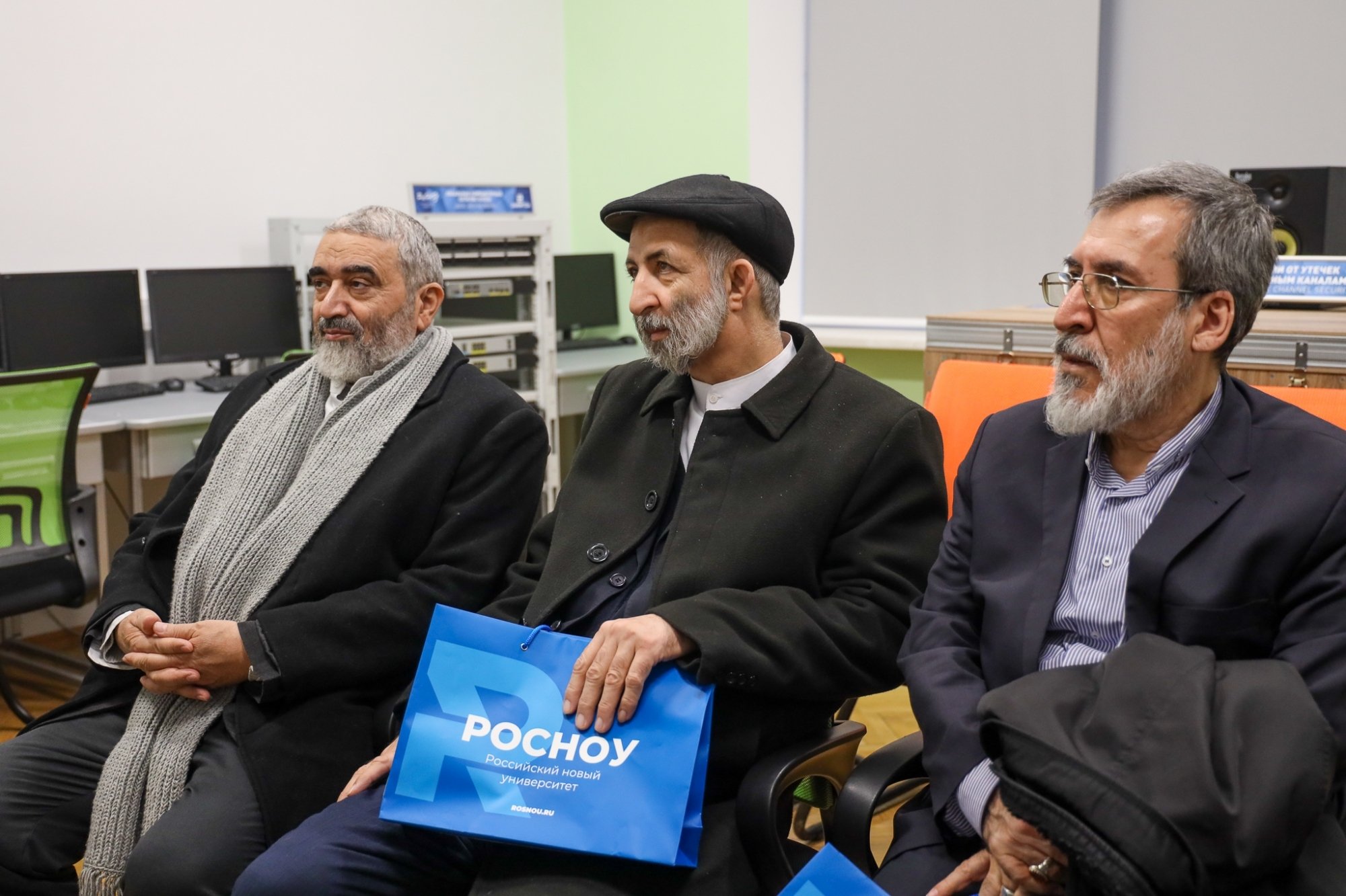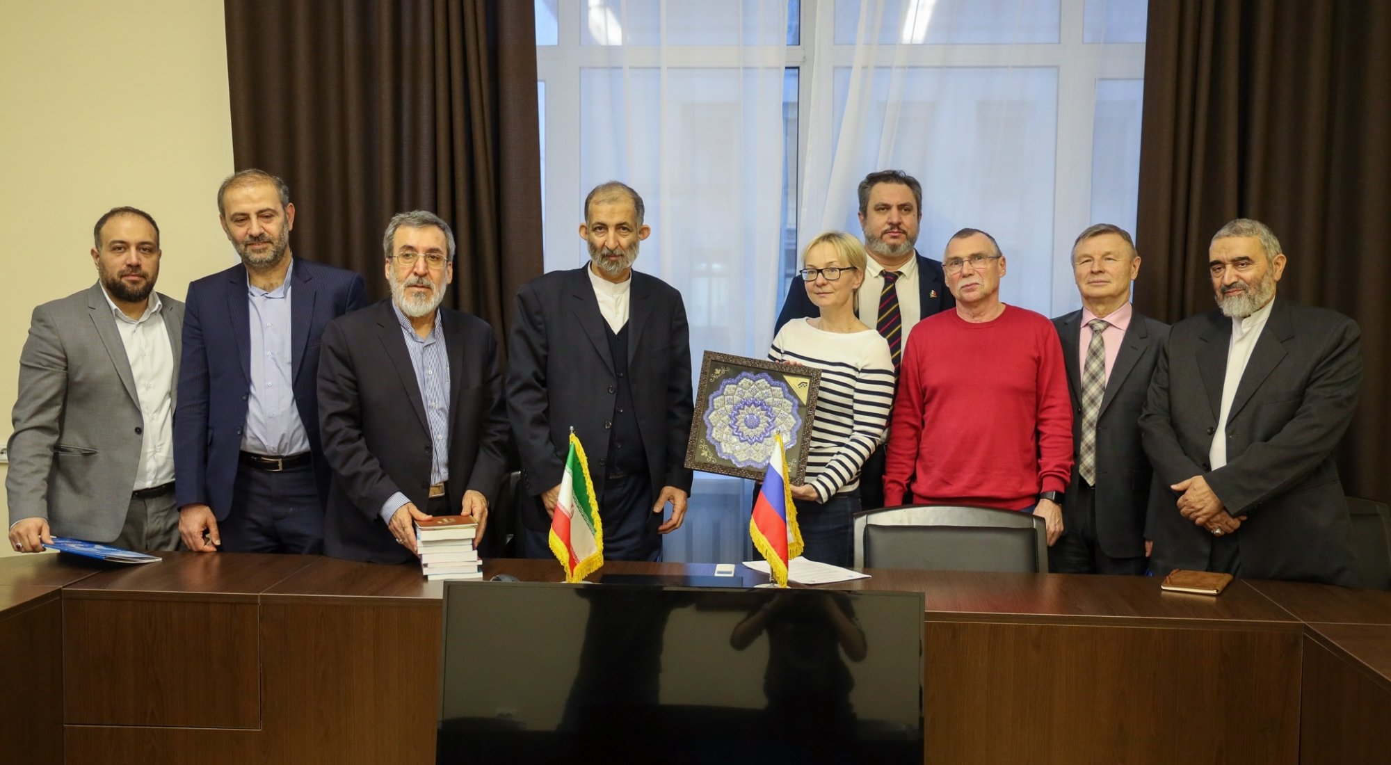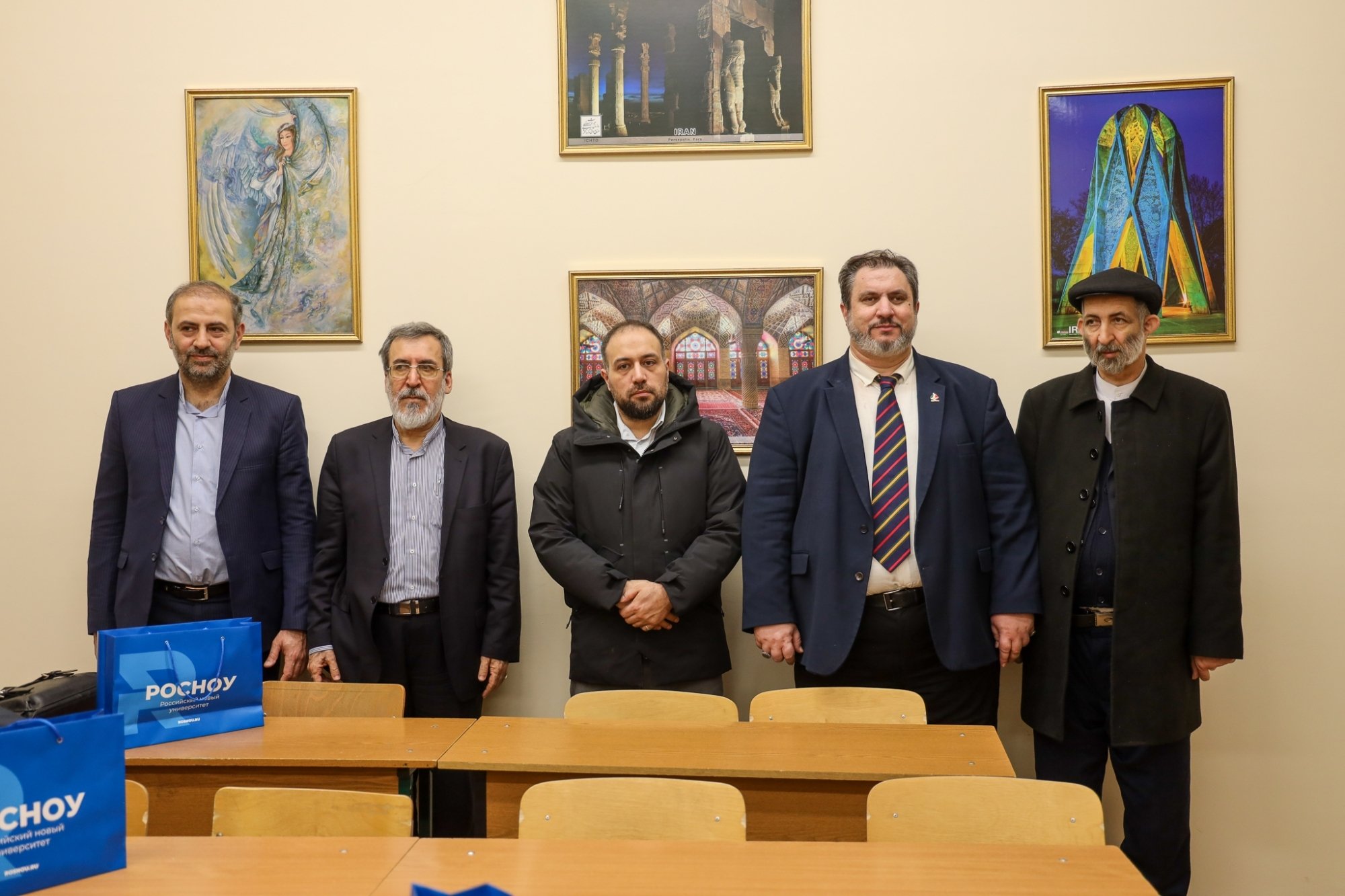 On 12 December 2022, Russian New University (RosNOU) hosted an Iranian delegation from Al-Mustafa International University (MIU). The delegation was led by MIU’s representative in Russia Dr. Rasul Abdollahi and also included MIU’s Vice-Rector for Education Dr. Hamid Jazaeri, Head of Staff Mohammad Alinejad Shani, Head of MIU’s Institute of Quran and Hadith Mohammad Ali Rezai Renani, Vice-Rector for Economic Affairs Naim Rezaian, and Head of Research Department, MIU’s representative in Russia Airat Baeshev.