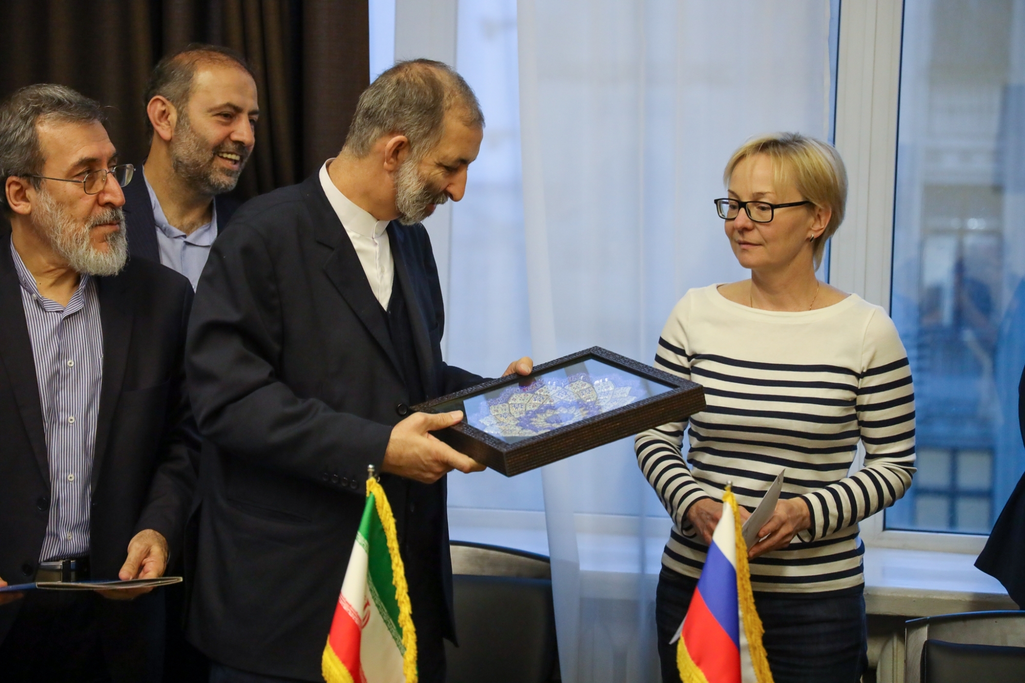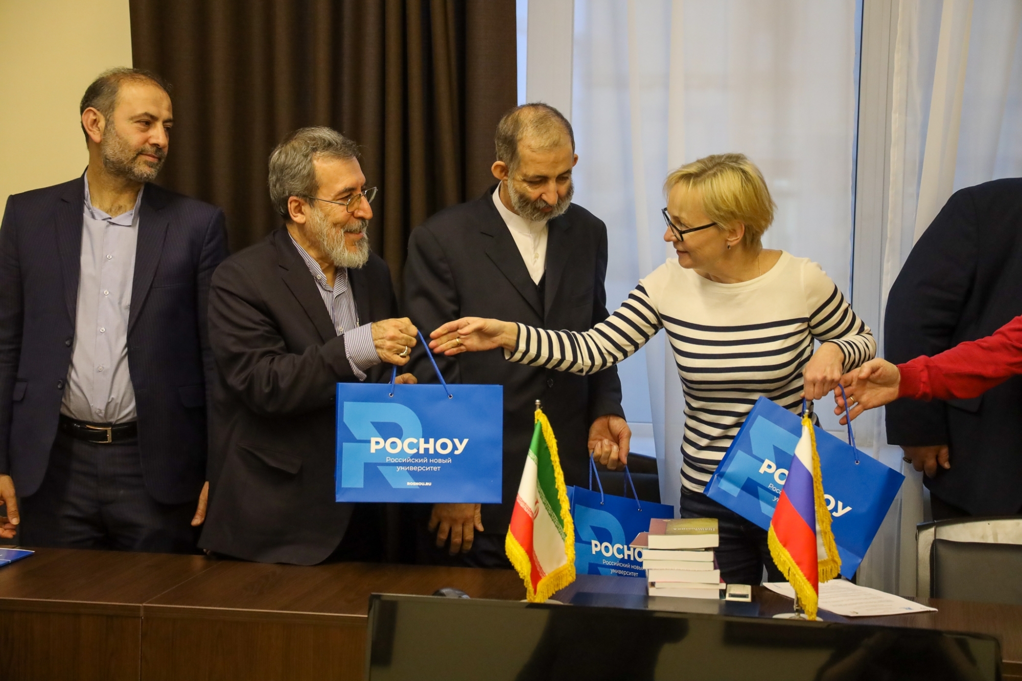 The receiving party was represented by RosNOU’s First Vice-Rector Elena V. Lobanova, Vice-Rector for Education Grigory A. Shabanov, Vice-Rector for Education Quality and Accreditation Igor V. Darda, and Director of the Center of Iranian Culture and Persian Language, Project Administrator for the Middle East Dr. Ahmad Reza Elahi.