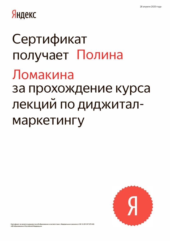On April 25, 2020, six first-year students in the master’s degree programme in Advertising and Public Relations successfully passed exams and received personal certificates from Yandex