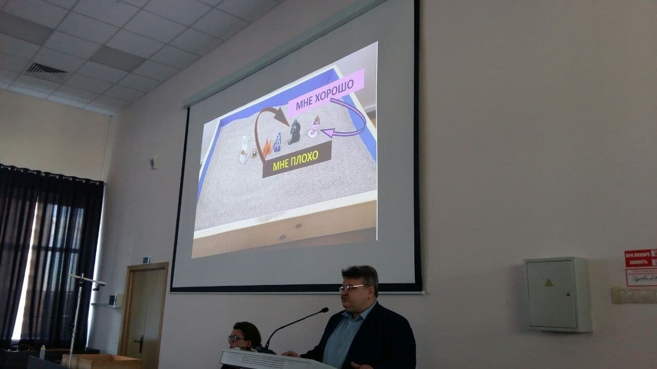 Aleksandr Ognev, Doctor of Psychology, who is an academic supervisor of the Humanities Institute at RosNOU, the expert in the field of sand therapy, head of the federal innovation platform, in his speech dwelled upon the sources of the sand therapy and explained the essence for the application of this methodology to render psychological assistance for preserving vitality, resistance and composure not to fall into frustration but continue working.