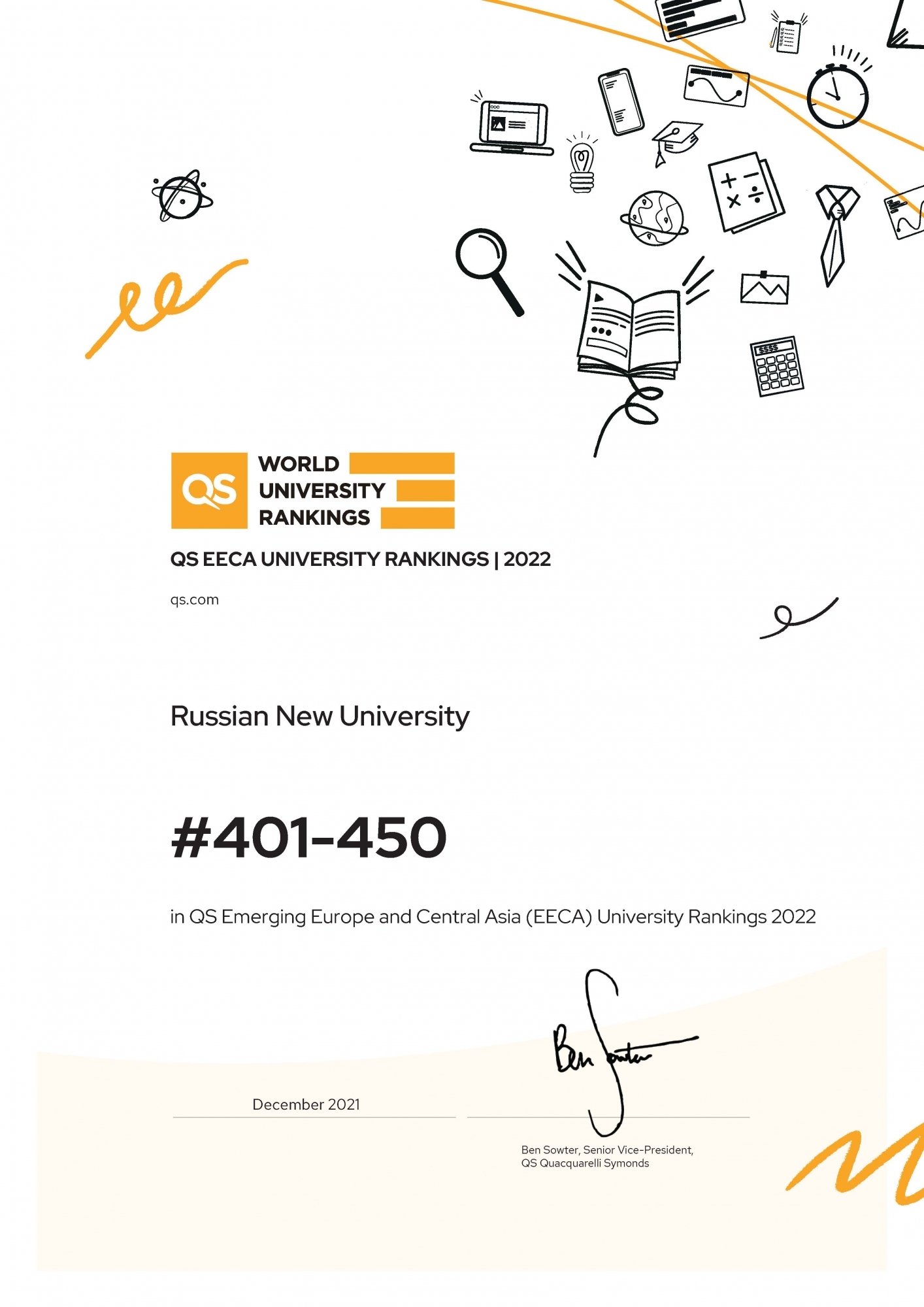 Russian New University (RosNOU) was ranked 401-450 among all the EECA universities and 106-128 among – the Russian participants in QS EECA University Rankings 2022.