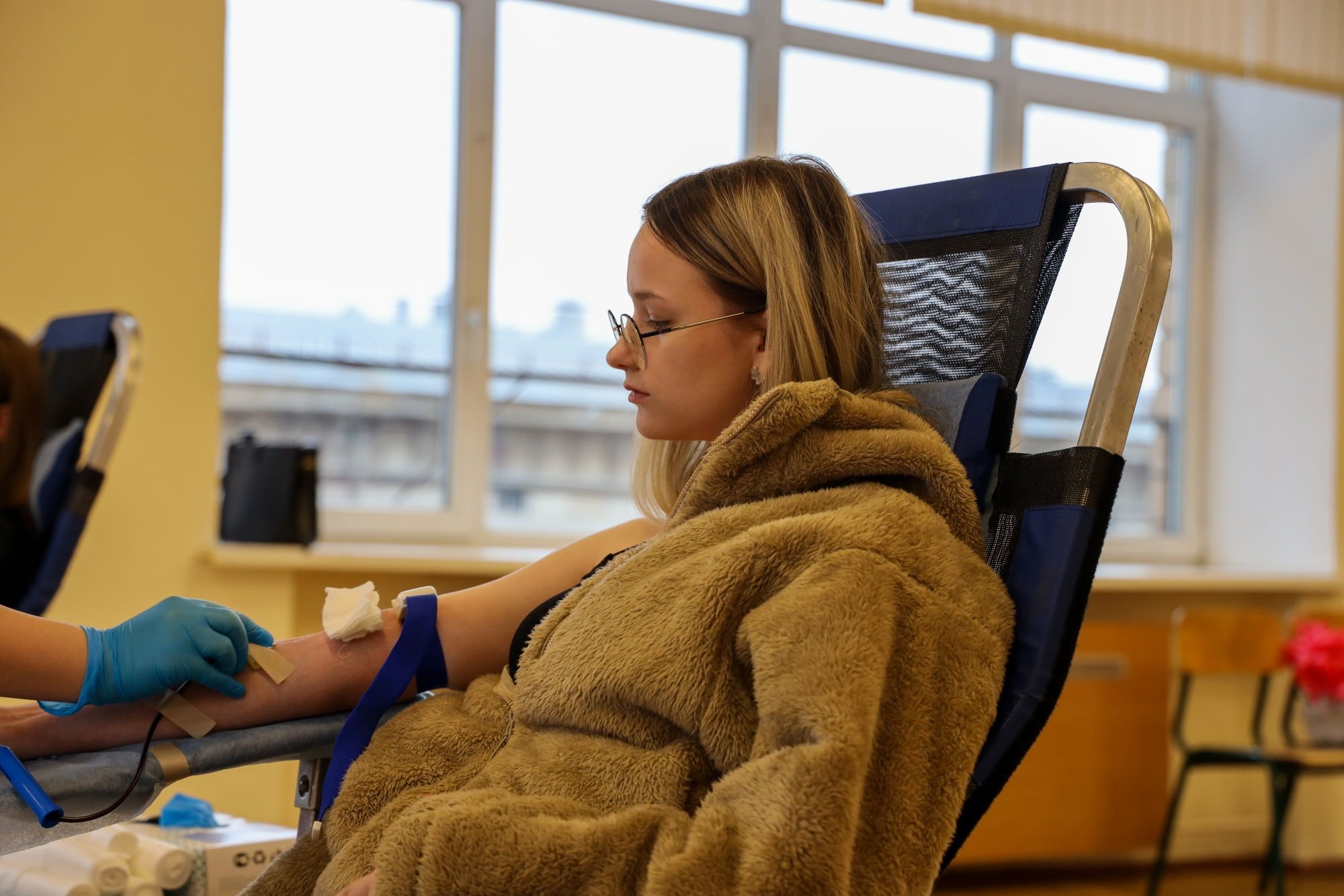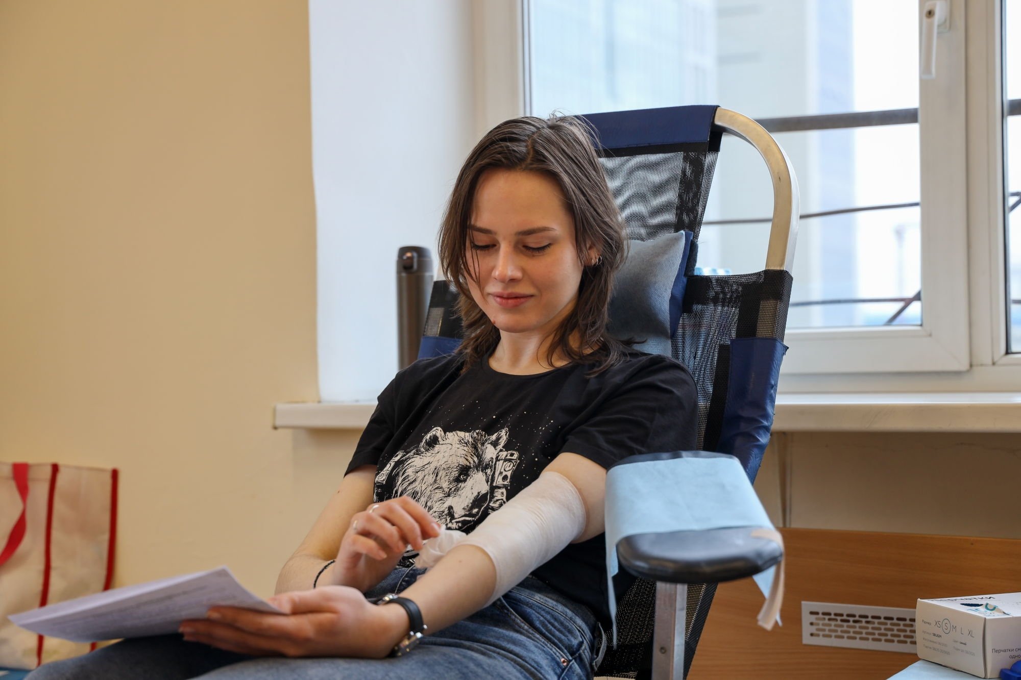 — Одна из важных частей подготовки — распространение информации, чтобы студенты и сотрудники знали о возможности сдать кровь прямо на месте работы, учёбы, — рассказывает руководитель Волонтерского корпуса Лолита Тулькибаева. — Всю прошлую неделю мы проводили информационную кампанию, раздавали листовки в холле первого этажа, писали посты в соцсетях. Видимо, сработали мы хорошо: рекордное количество желающих! Что ещё радует: никто не упал в обморок!