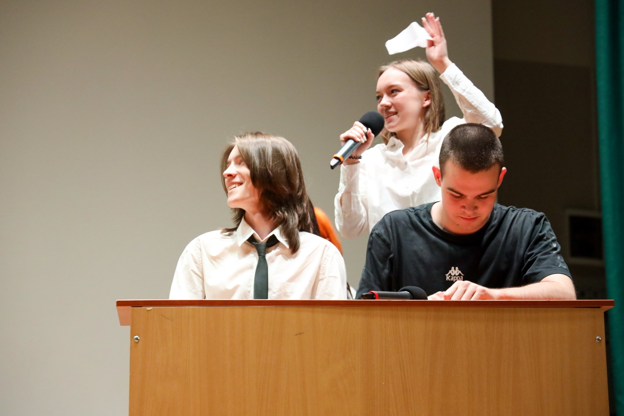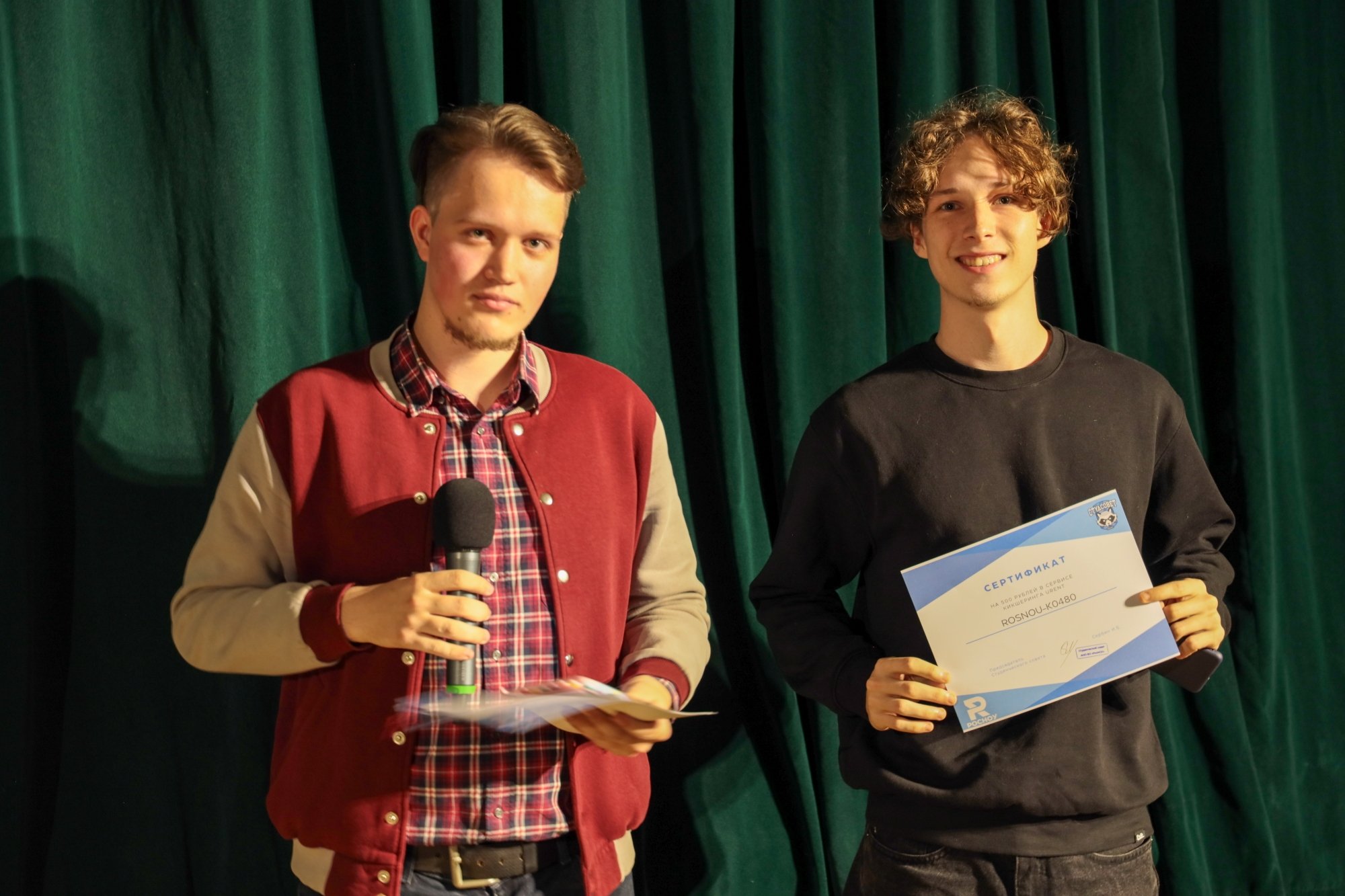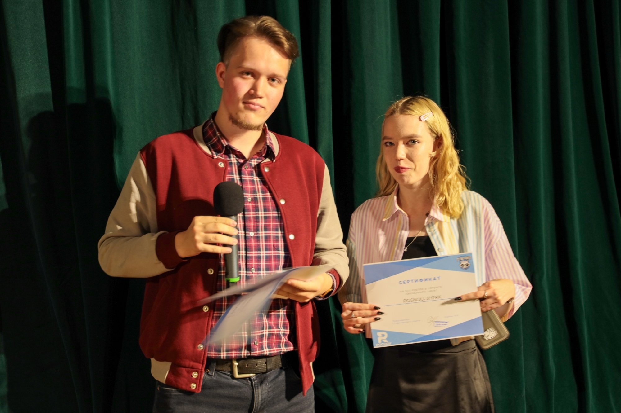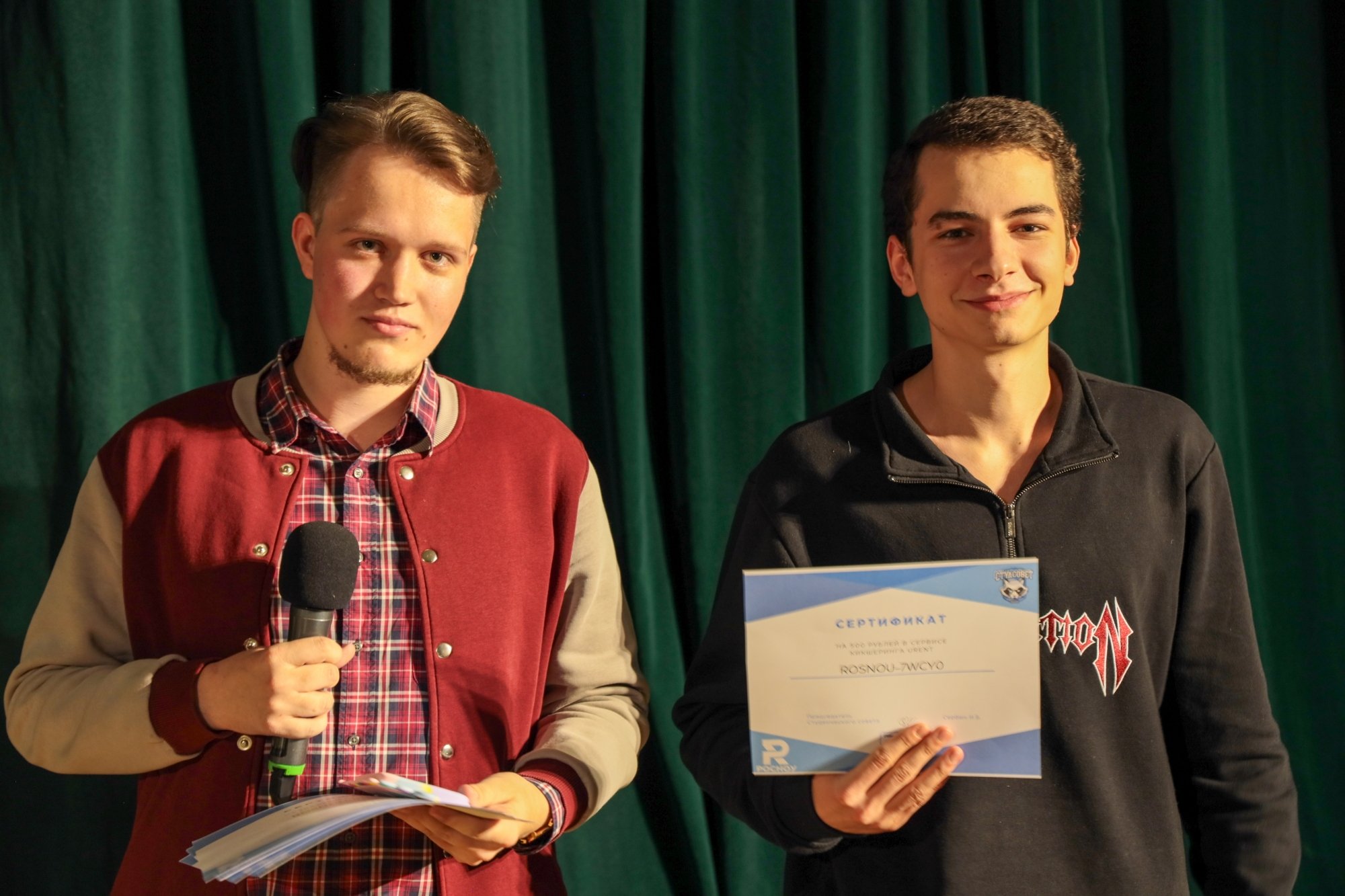Свои призы получили и победители конкурса, объявленного в социальных сетях вуза. Они угадали, кто из преподавателей РосНОУ будет участвовать в постановке на сцене, и получили сертификаты на самокаты «Юрент».