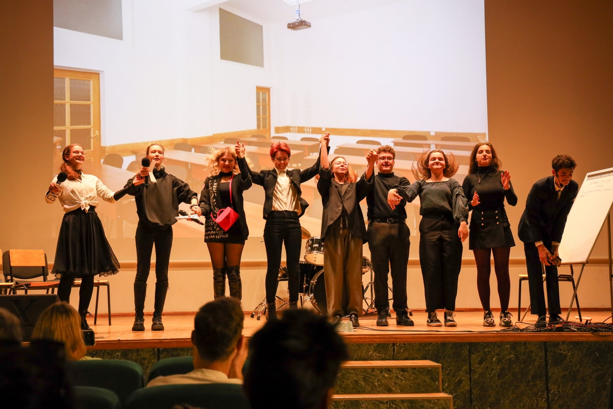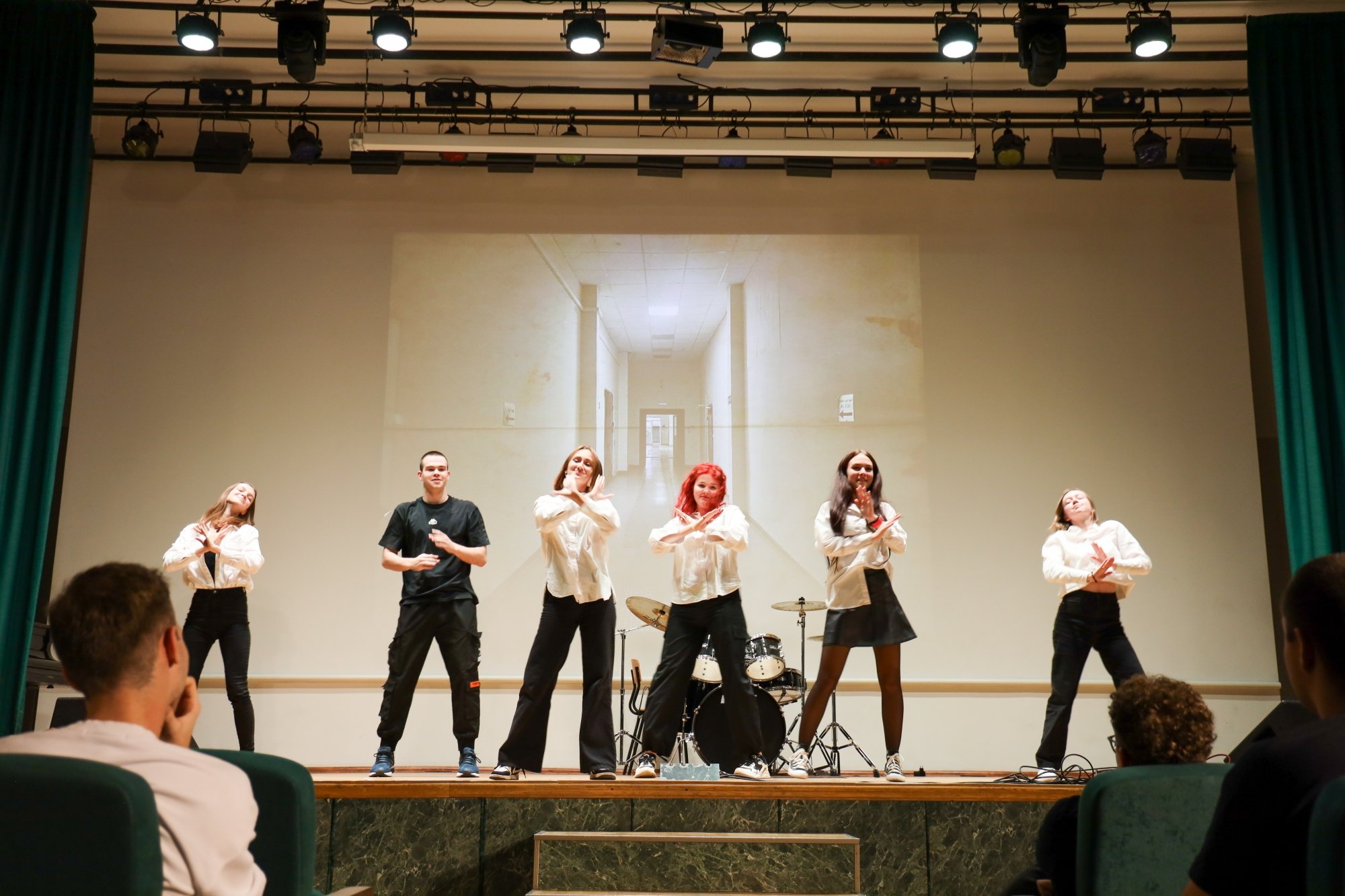 Третий год подряд на посвящении заложили капсулу времени с пожеланиями первокурсников самим себе, которую откроют в конце обучения. А обещанный музыкальный сюрприз закрыл официальную часть посвящения — для присутствующих выступила приглашенная кавер-группы «SANECHKA-BAND».