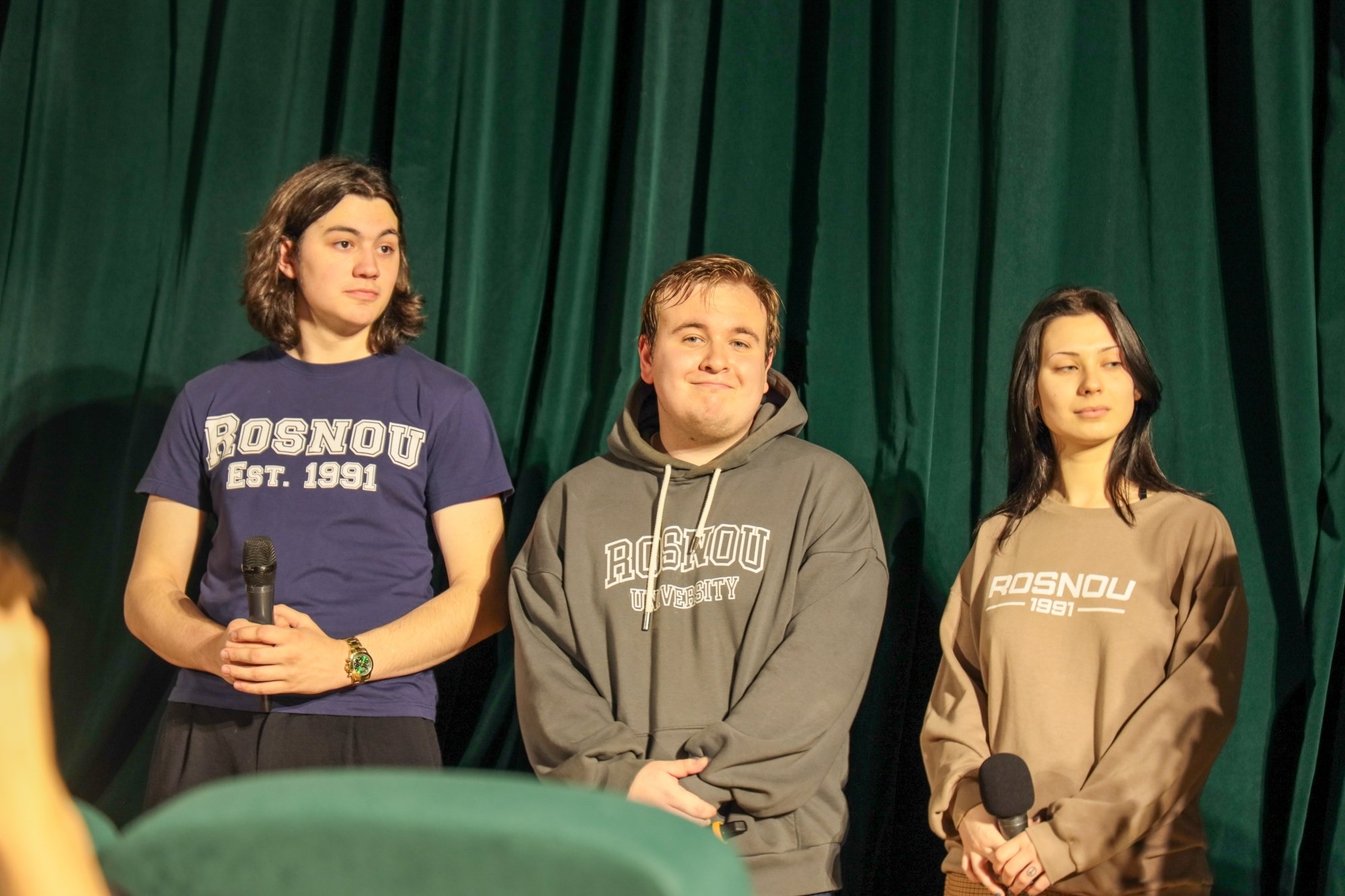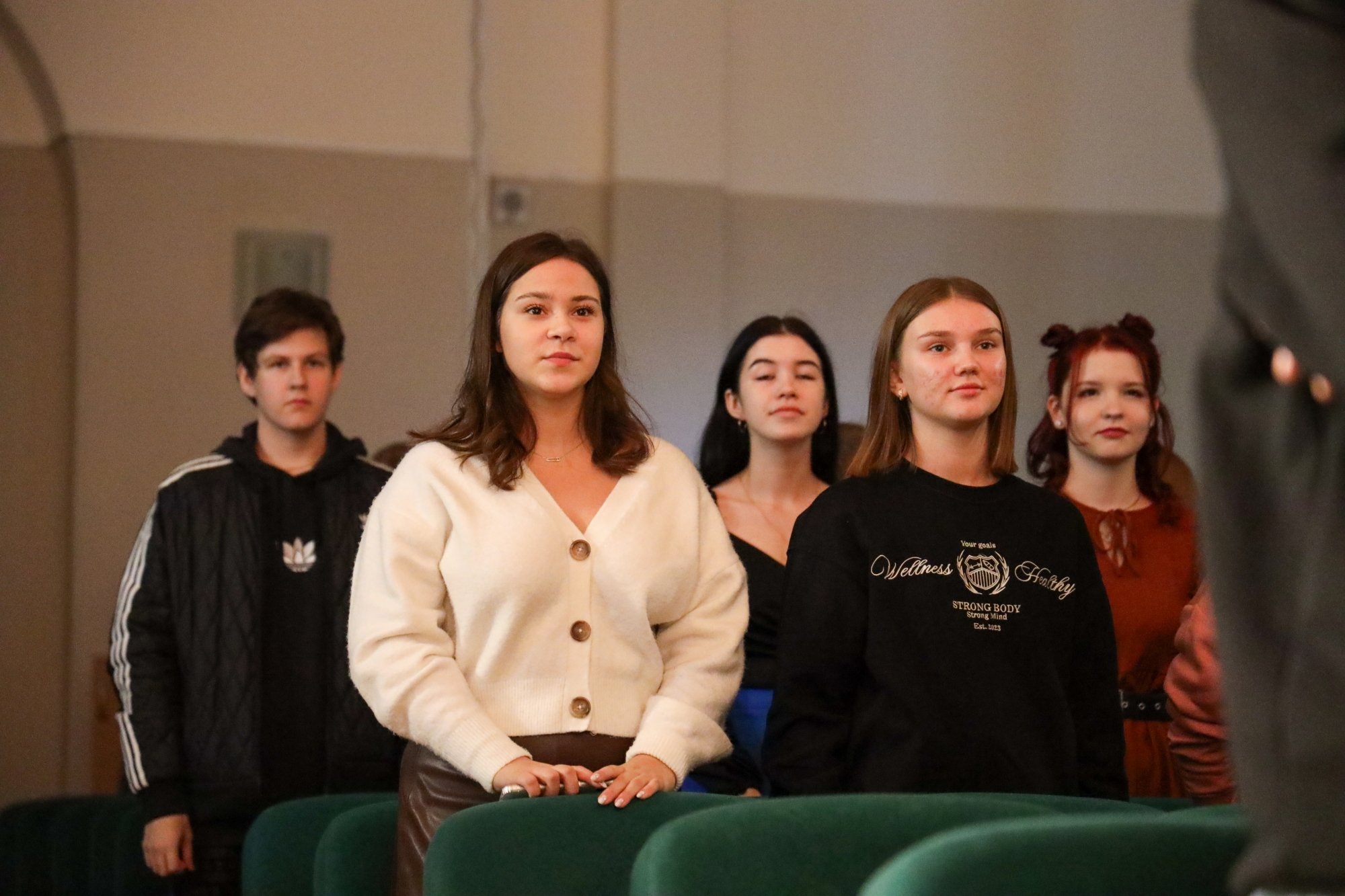 Обнажив свои главные страхи (а значит, наполовину их преодолев), первокурсники дали клятву студенчества. Закрепил клятву международный гимн студентов в исполнении вокальной студии РосНОУ.