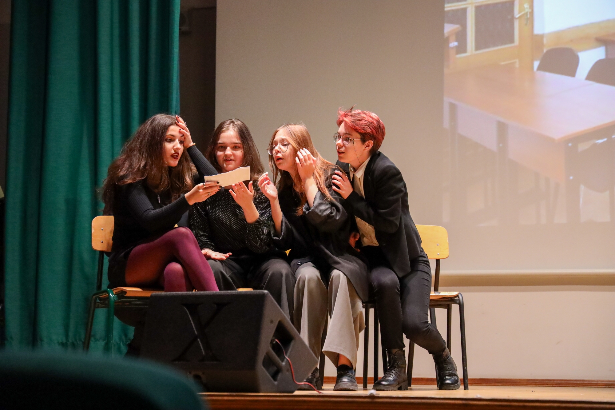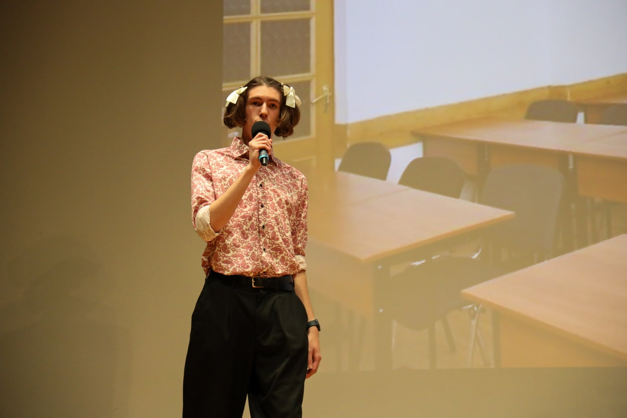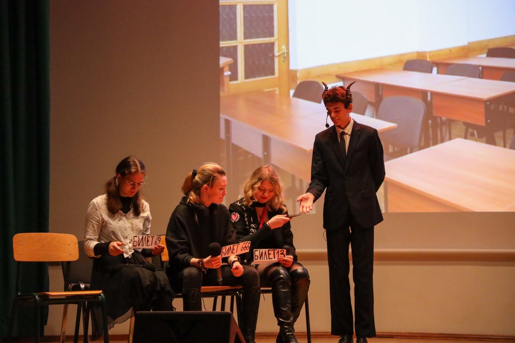 Первокурсники Гуманитарного института назвали свое выступление «Страх спалиться со шпаргалкой на Авиамоторной, номер», номер Института информационных систем и инженерно-компьютерных технологий был посвящен страху «ненужности высшего образования», представители Института экономики, управления и финансов показали свой «Страх сессии», а студенты Института бизнес технологий — «Страх пар истории».