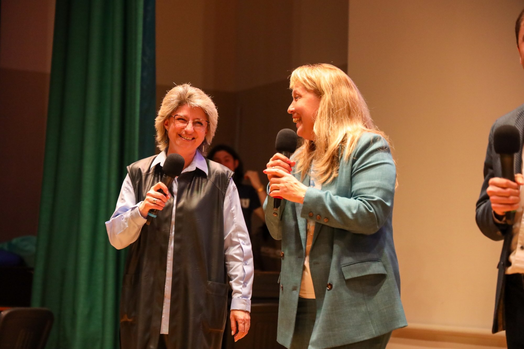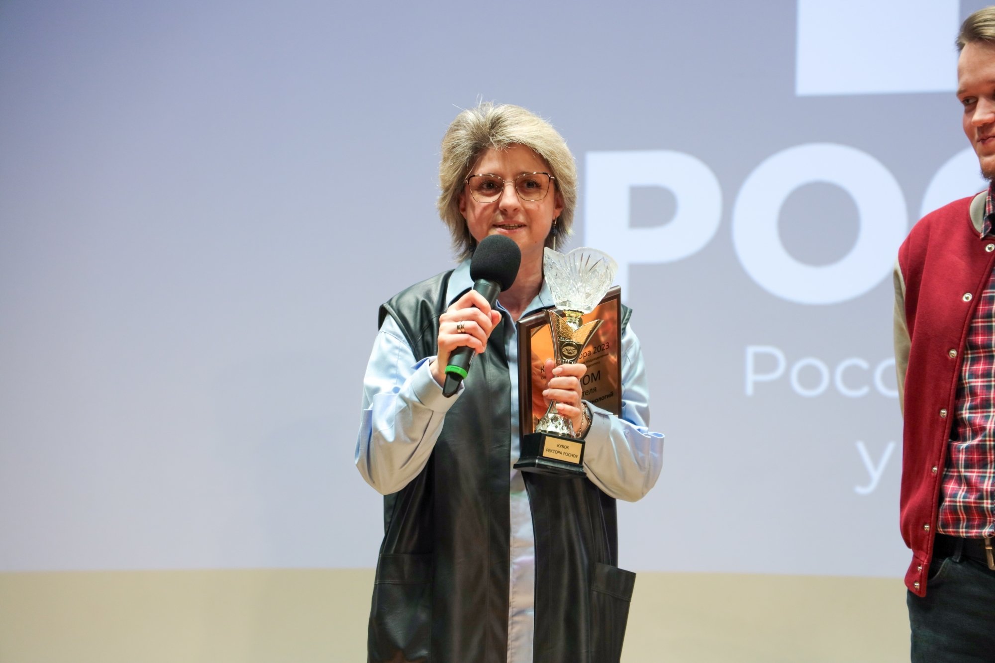 Еще на посвящении в студенты РосНОУ традиционно объявляют два достижения. В этом году в рамках акции «Подари улыбку детям» больше всего канцелярии для детского дома в Покрове собрал Колледж РосНОУ. А Институт бизнес-технологий был официально награждён, как победитель Кубка Ректора 2022-2023 учебного года. Директор института Суреева Марина Николаевна торжественно приняла награду и пожелала своим студентам стремиться к историческому достижению — выиграть два раза подряд.