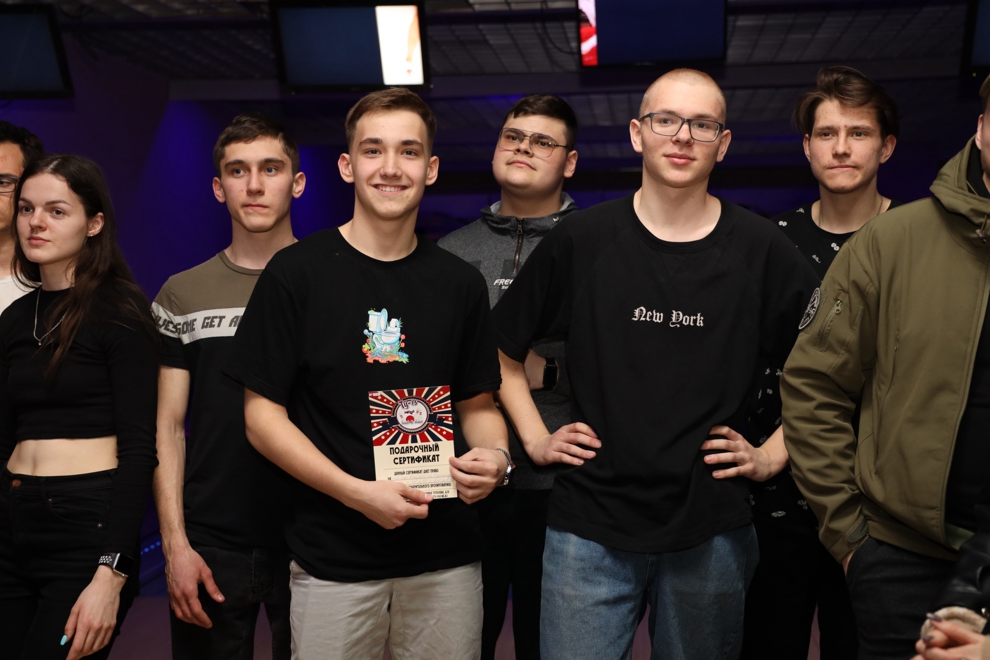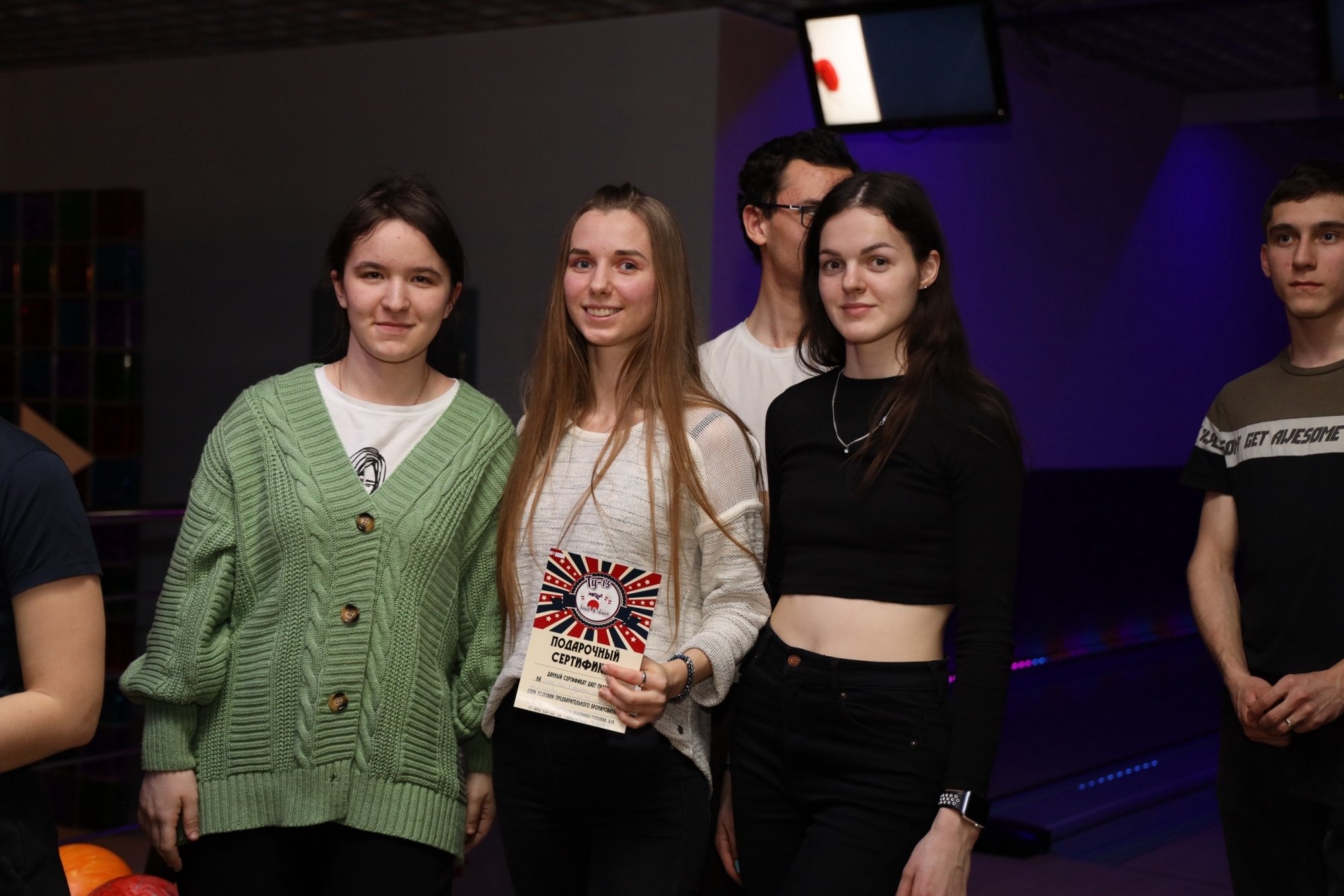 Чемпионом РосНОУ по спортивному боулингу стала команда Института бизнес-технологий. Победители получили подарочный сертификат на три часа игры в боулинг, команды, занявшие второе и третье места, получили сертификаты на два и один час игры.
