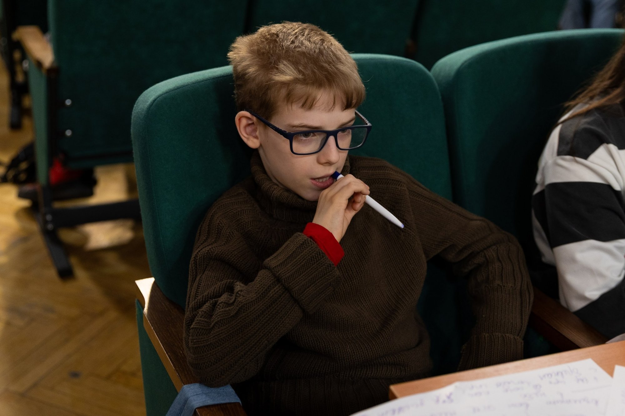 В ЧГК я играю уже три года, тренируюсь раз в неделю. Сегодня участвовал в турнирах в составе сборной своего лицея — пятый, седьмой, девятый классы. Вопросы были среднего уровня, не очень лёгкие и не слишком сложные. Думаю, выиграть нам помогли сплочённость, командный дух и кропотливая работа нашего тренера Дмитрия Славина. Я уже задумываюсь о поступлении в вуз: университет ещё не выбрал, но хочу связать жизнь с информационными технологиями. Возьму себе на заметку ИСИКТ РосНОУ — здесь обучают по моему профилю.