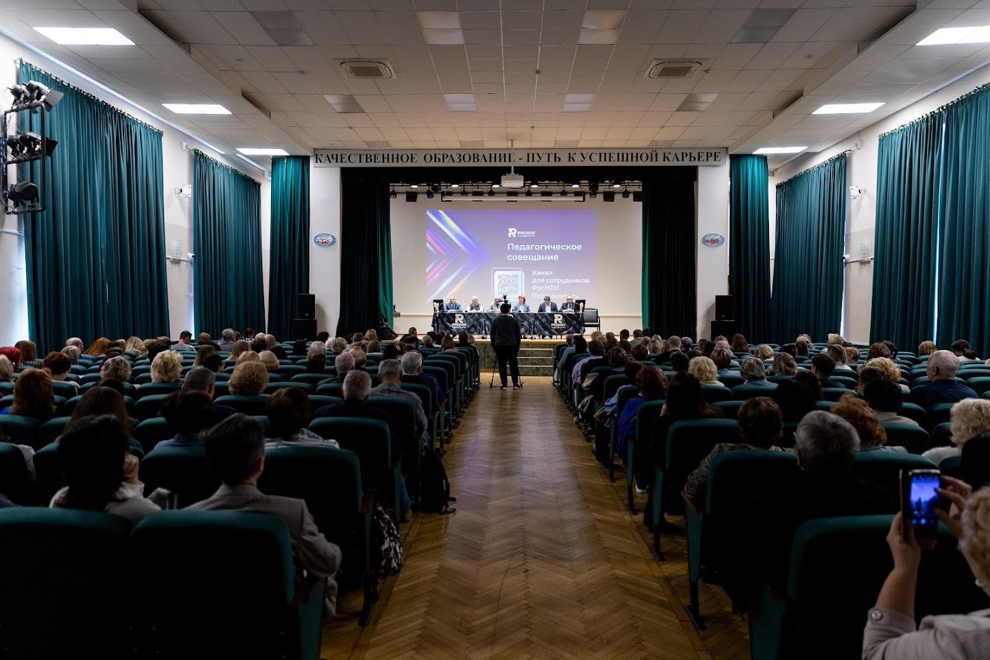 28 августа в Малахитовом зале прошло ежегодное педагогическое совещание сотрудников и научно-педагогических работников Российского нового университета (РосНОУ).