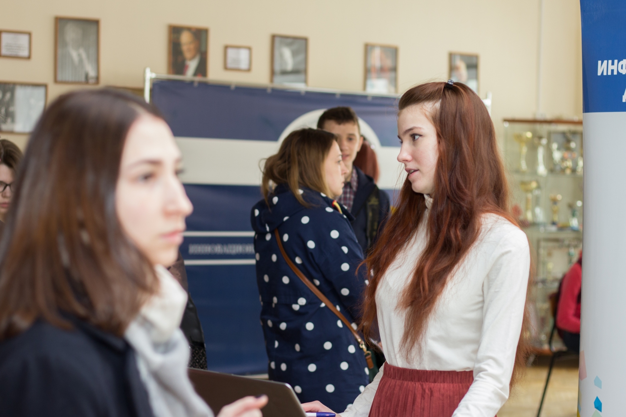 В начале мероприятия для абитуриентов была проведена экскурсия по университету, которая завершилась на седьмом этаже, где гости смогли пообщаться с представителями институтов и задать вопросы консультантам информационного центра для абитуриентов.