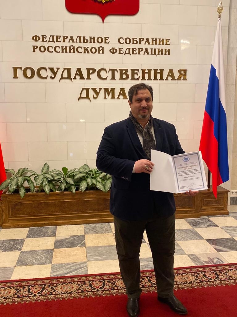 По итогам встречи и конференции директор Центра культуры Ирана и персидского языка РосНОУ, координатор проектов по странам Ближнего Востока управления международного сотрудничества РосНОУ, кандидат медицинских наук Элахи Ахмад Реза получил благодарность депутата Государственной думы за высокий профессионализм и неоценимый вклад в укрепление российско-иранских отношений и поддержки молодёжных проектов.