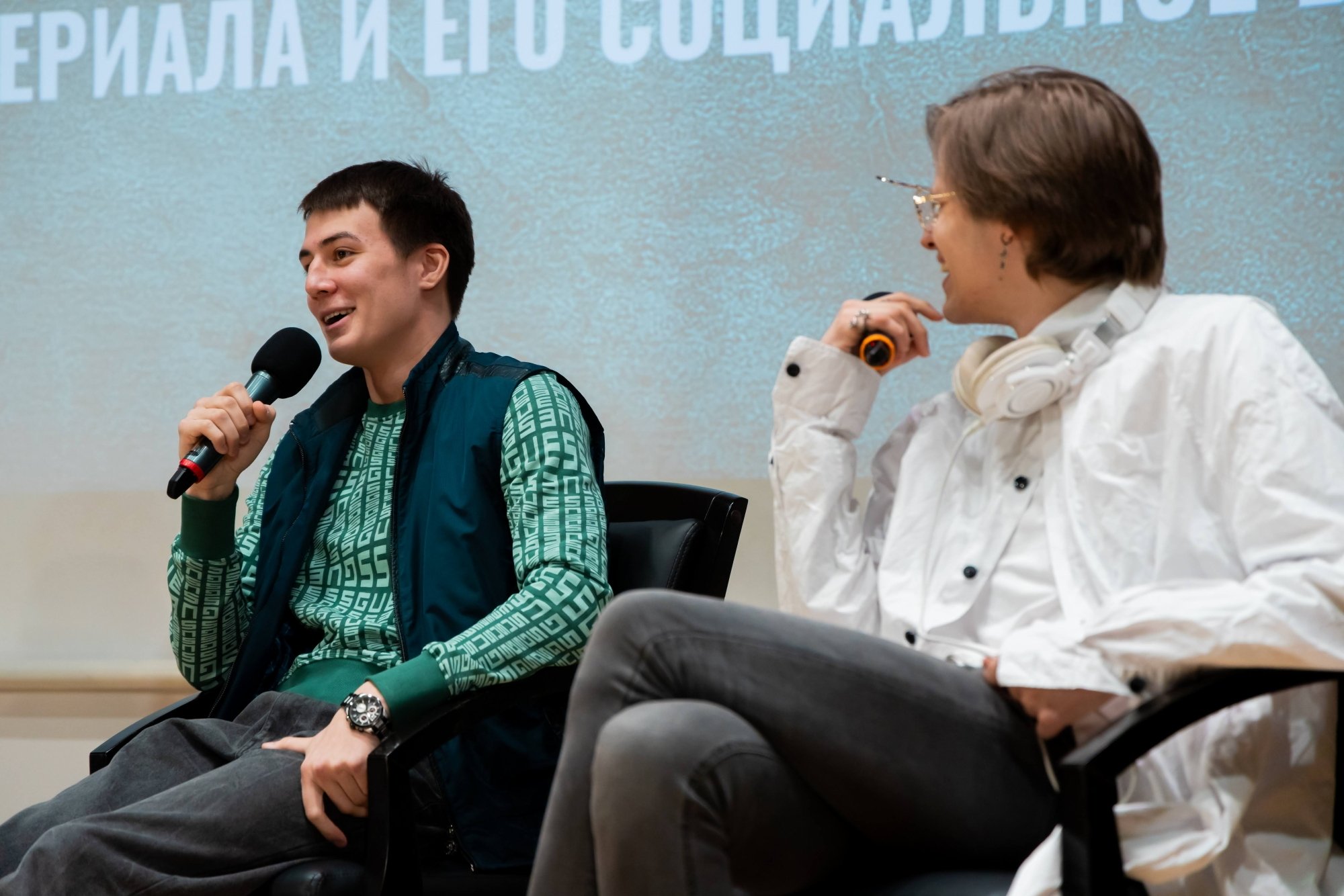 У актеров также спрашивали про работу с другими звездами сериала ― Иваном Янковским и Никитой Кологривым, про нахлынувшую популярность, про отношение друзей и знакомых к их работе, про возможное влияние проекта на другие российские сериалы про и даже про чипсы «Слово пацана», которые можно встретить в любом продуктовом магазине.
