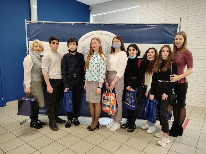 В РосНОУ приехали заместитель директора по воспитательной работе и социализации Елена Дмитриевна Рагимова, преподаватель русского языка и литературы Анастасия Жданова и восемь обучающихся редакции школьной газеты. В школе № 1383 планируется создать медиакласс и развивать медианаправление: газету, телевидение, создание видеороликов.