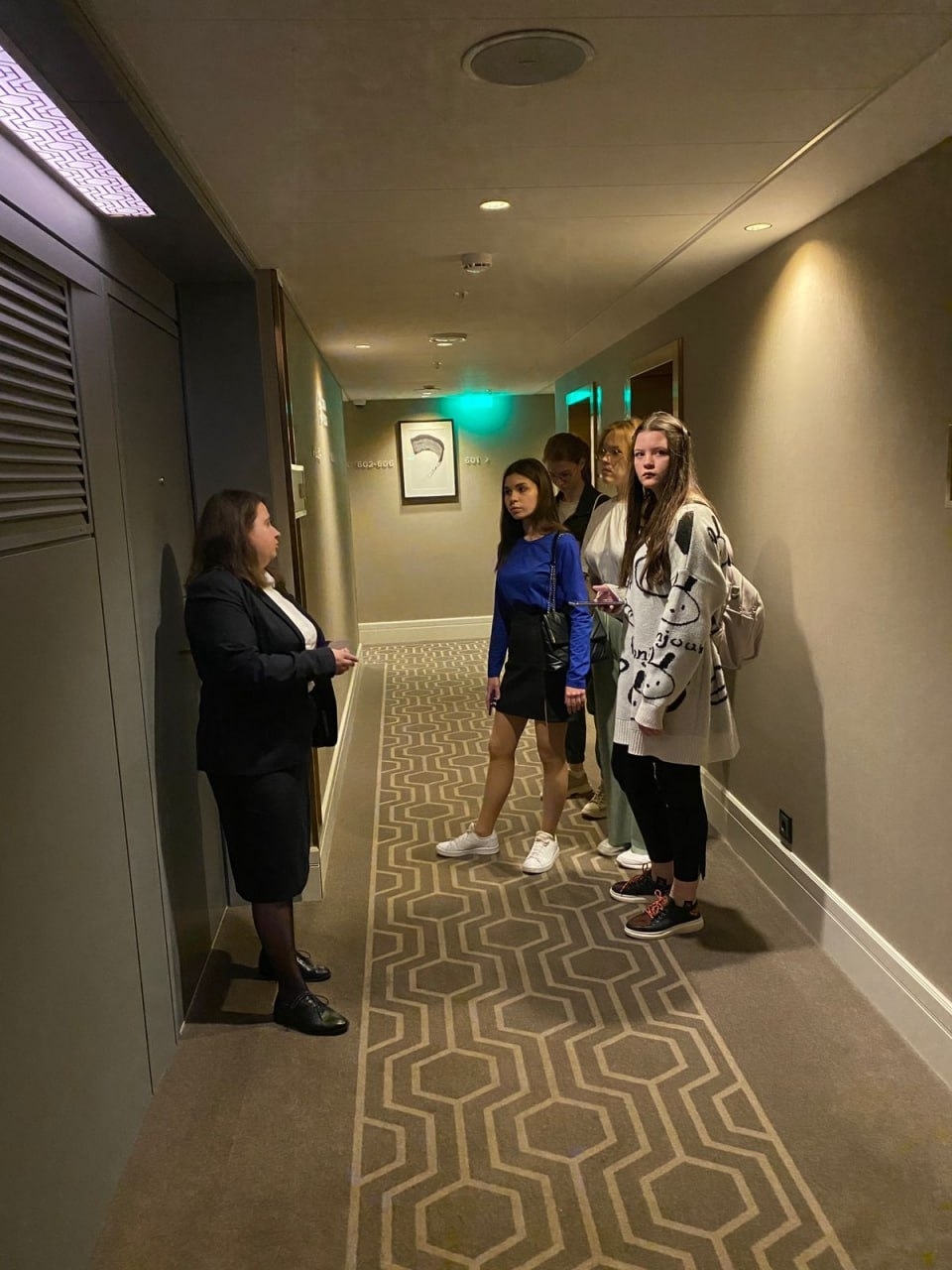 Первокурсники изучили особенности проектирования и оснащения номерного фонда и общественных зон бутик-отеля, получили много ценной информации о целевой аудитории подобных средств размещения. Супервайзер службы приема и размещения Анна Айткулова рассказала о нюансах, стандартах и тонкостях сервиса в отеле Chekhoff Hotel Moscow Curio Collection by Hilton 5*.