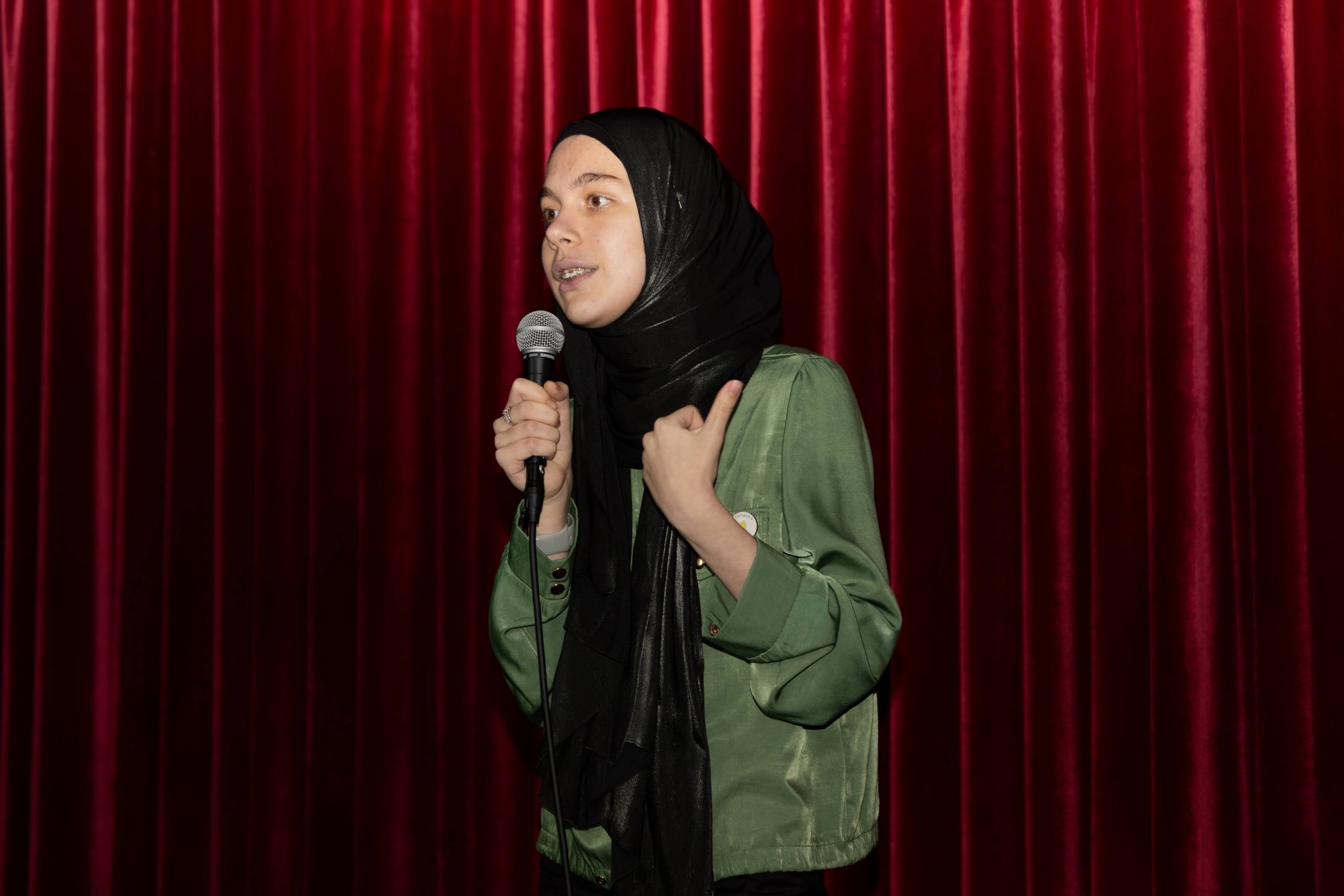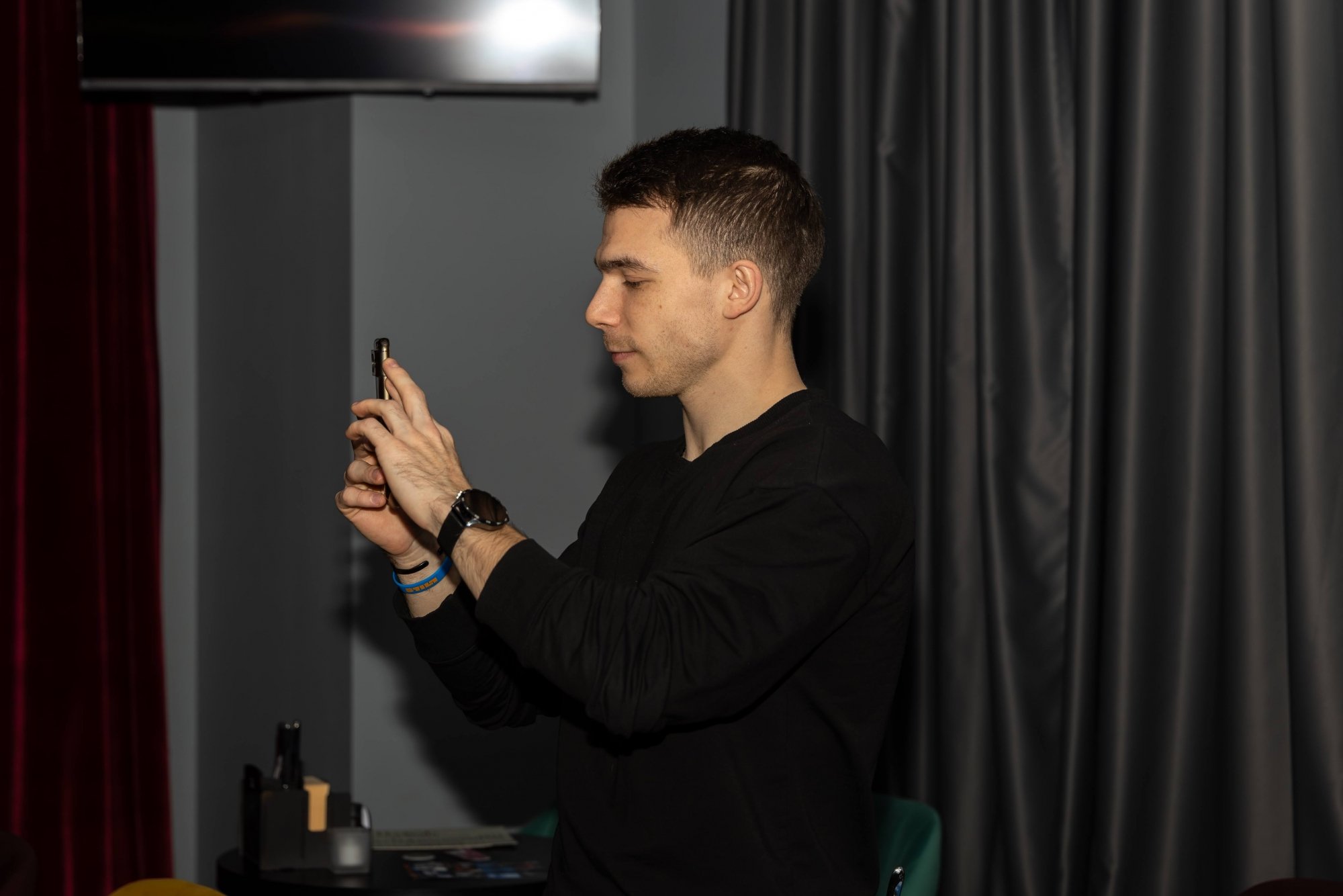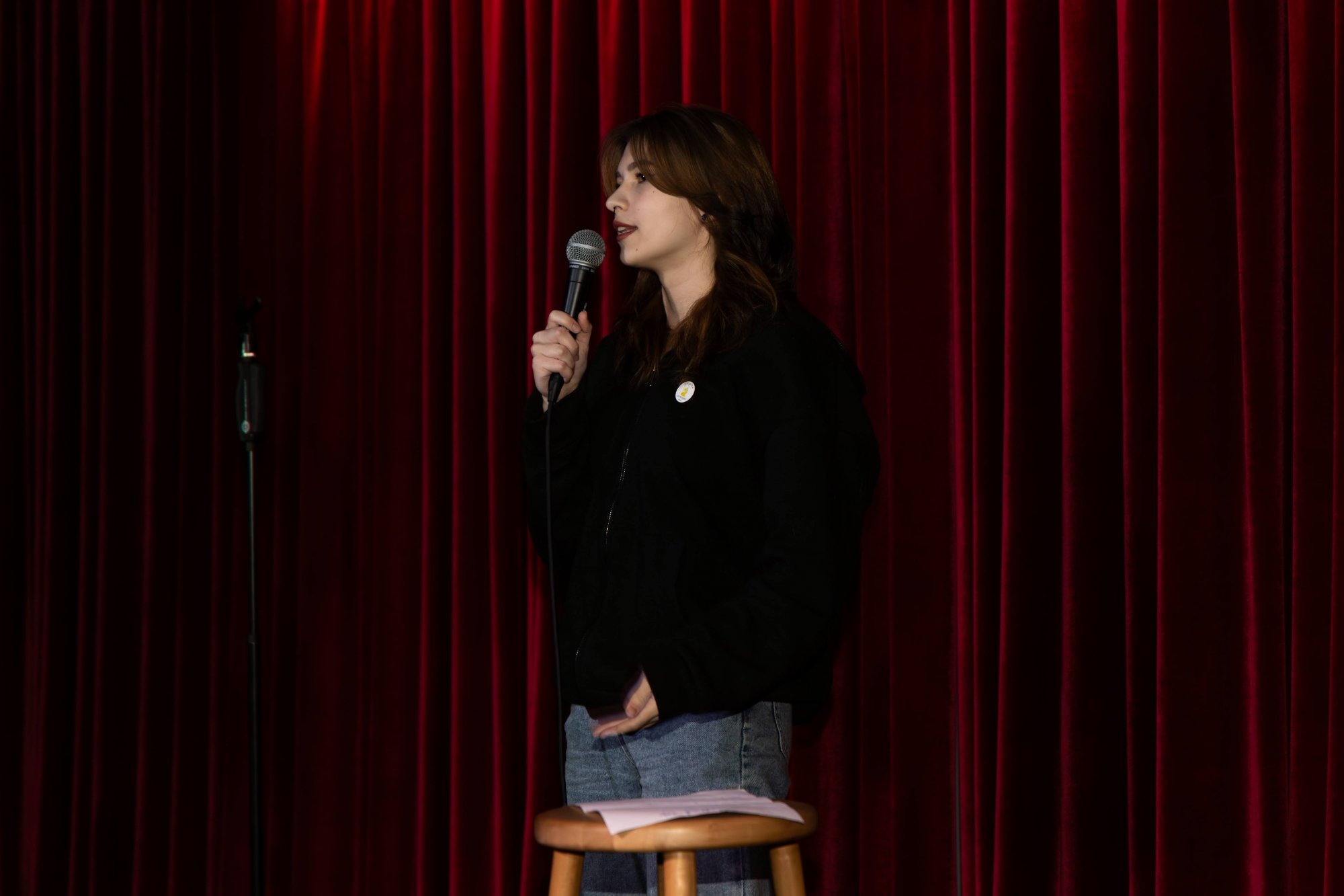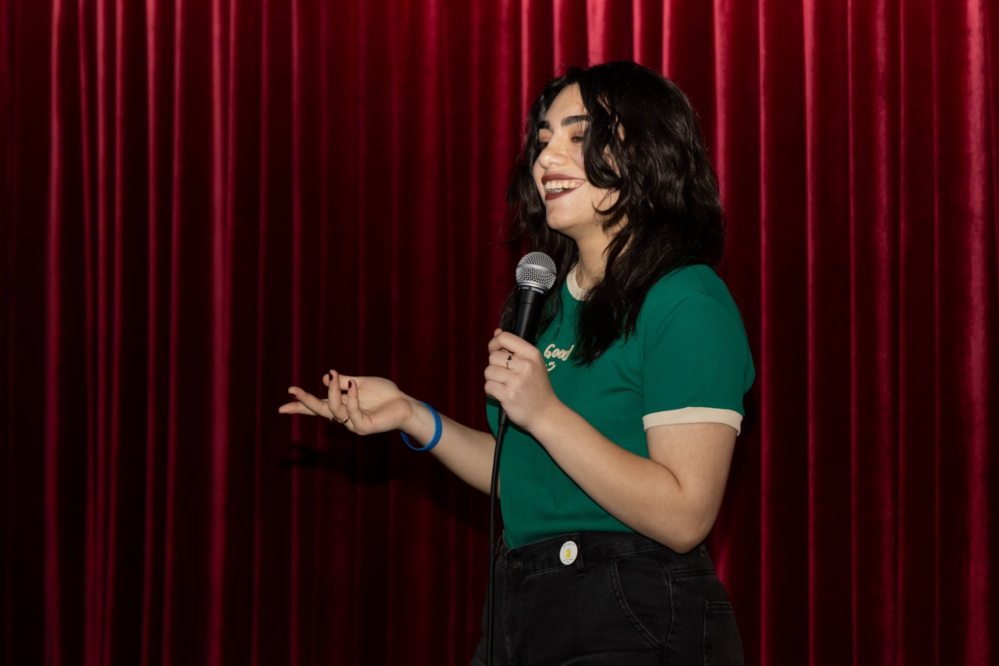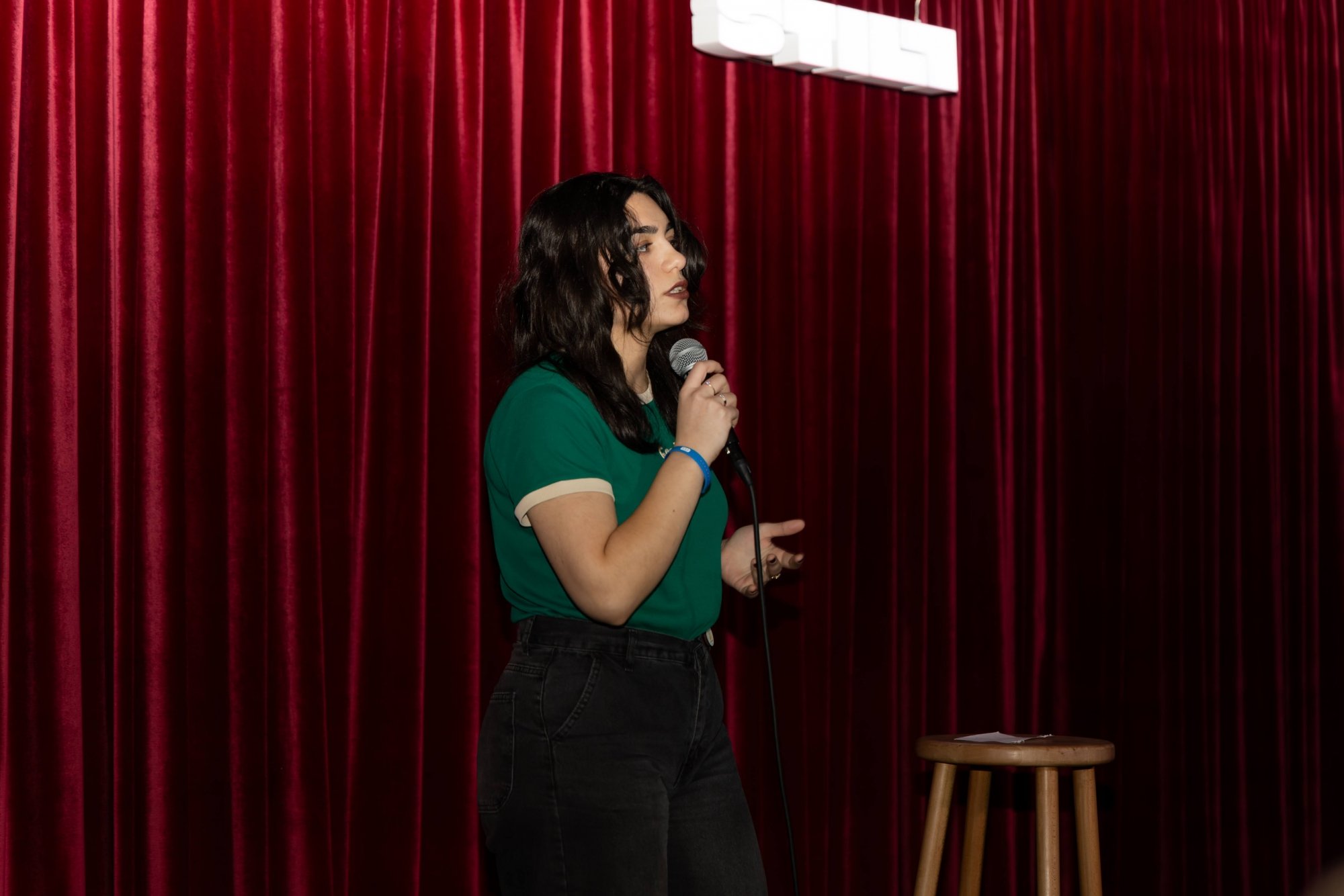 На сцену также вышли гости Студии комедии РосНОУ Елизавета Головина (Владивосток), Физули Ибадов (Саратов) и Влад Городничев (Нижний Новгород) — стендап-комики, которые выступают на профессиональных площадках.