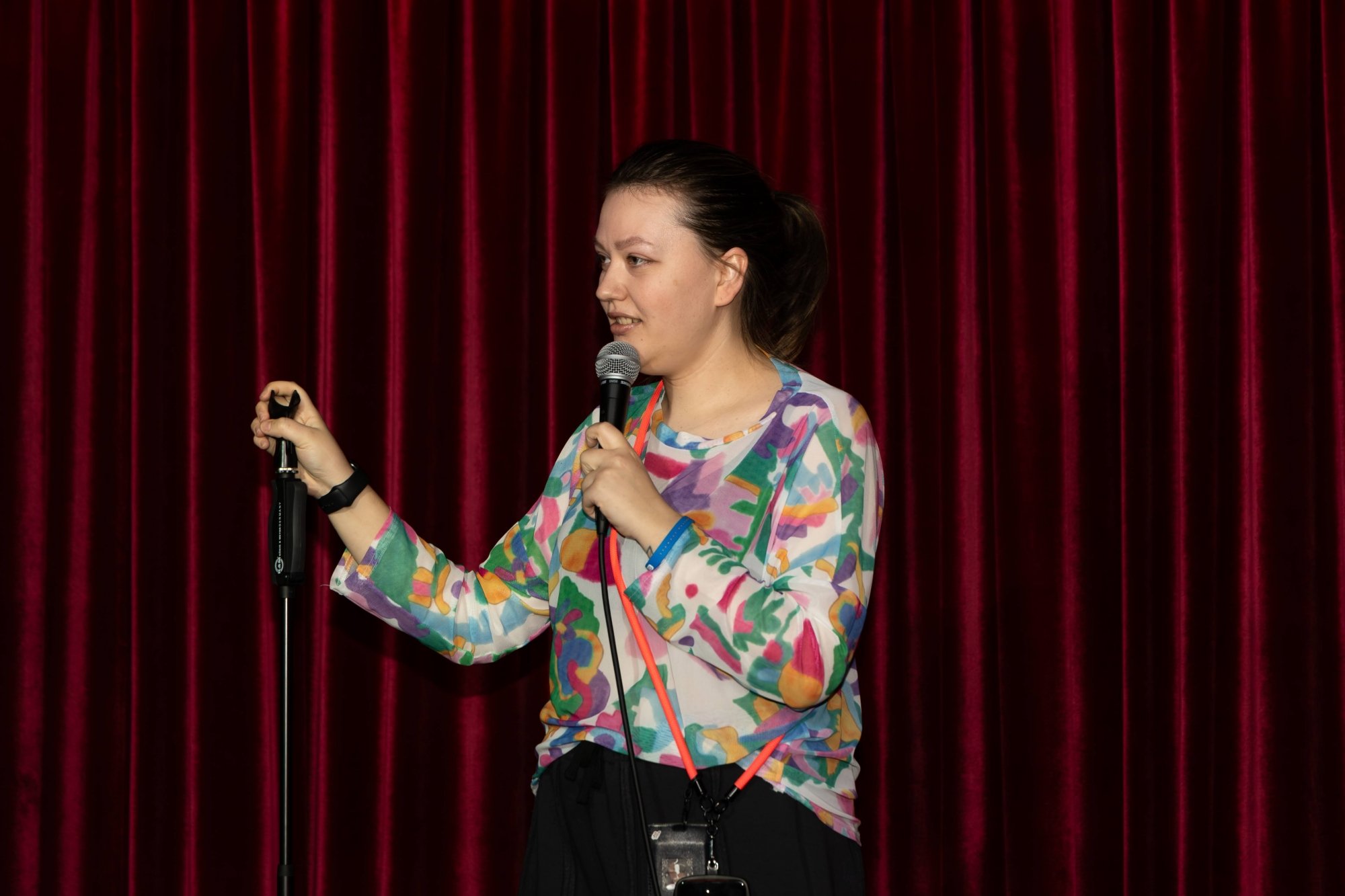 Я люблю этот формат! Это творчество, самореализация, тренировка остроумия, возможность почувствовать свои психологические границы, выйти из зоны комфорта, преодолеть страхи и сомнения, найти точки роста. Я и раньше хотела побывать на выступлениях наших ребят, но совпадало с парами у заочников. А тут всё удачно! Многих выступавших я сразу вспомнила и мне понравились их раскрепощённость, юмор. Даже возникла идея — предложу студентам отвечать на семинаре в формате стендапа: живо, эмоционально, от души! Всем участникам и руководителю Наталье Сергеевне желаю дальнейших творческих успехов, интересных идей, неуёмной энергии, а также новых площадок.