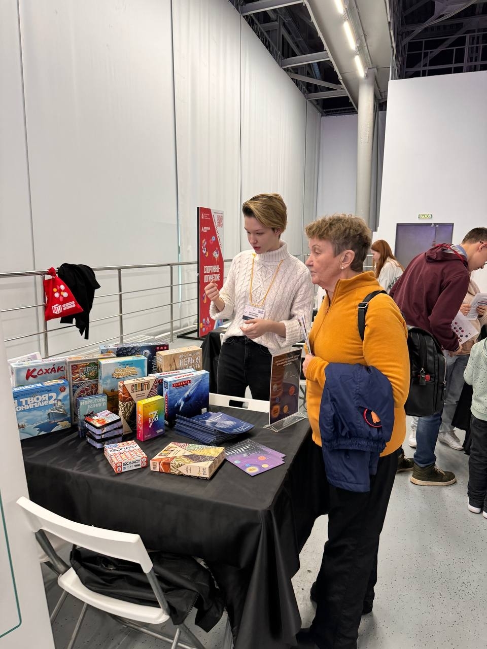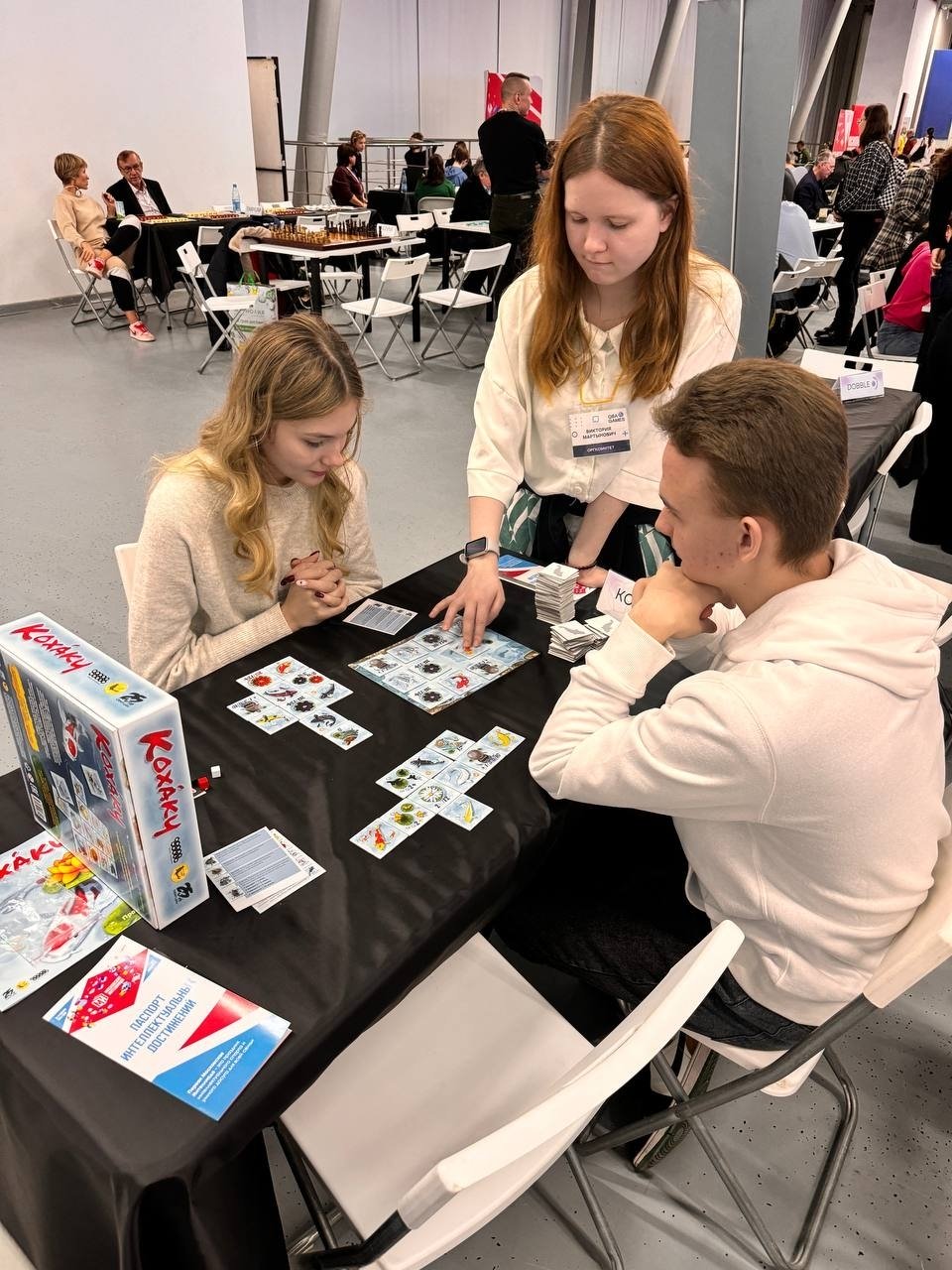 В программу интеллиады была включена и игротека РосНОУ. В течении двух дней команда QBA games — студенты-участники интеллектуального клуба и сотрудники проектного офиса РосНОУ — обучали и обучались настольным играм в 57 павильоне «Россия — моя история».