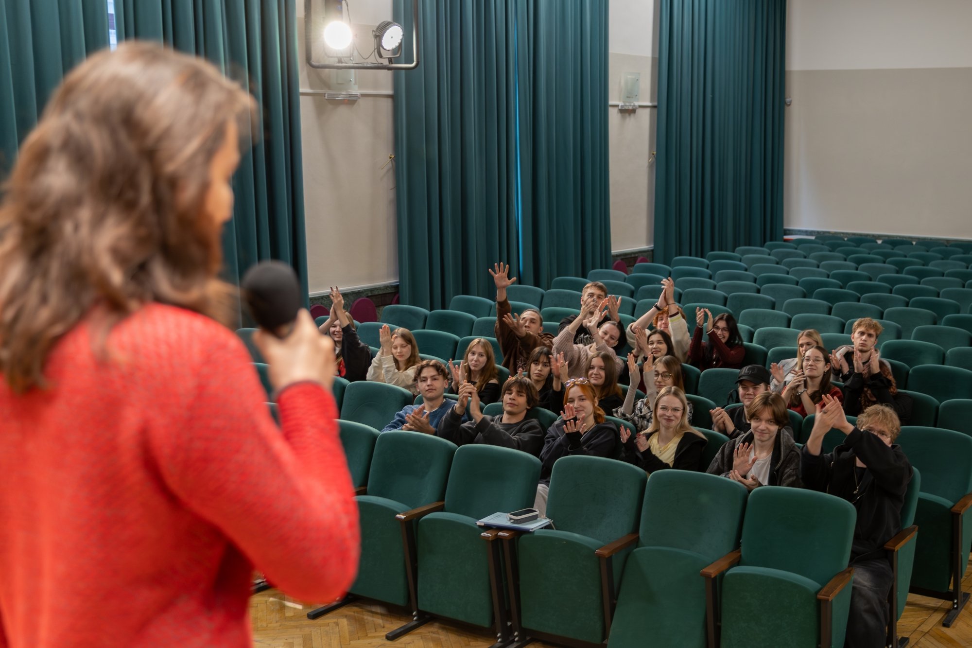 Я рассказал о различных актёрских системах, о речевых техниках, которыми пользуются публичные люди и успешные политики, о важности практического сценического опыта, который можно приобрести в Театральной студии РосНОУ под руководством заслуженной артистки России Наталии Ивановны Курсевич.