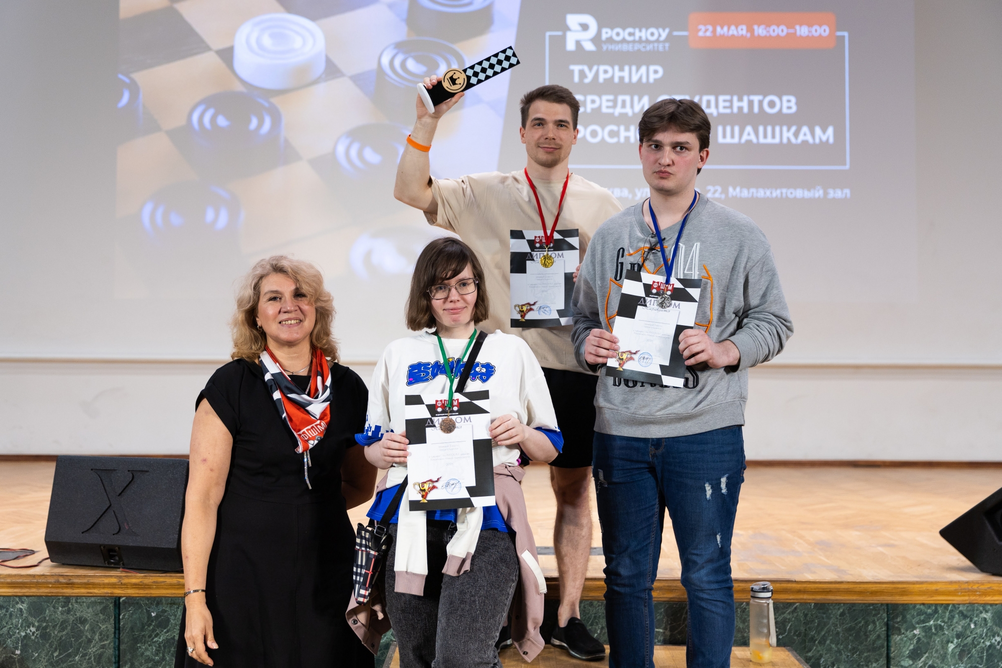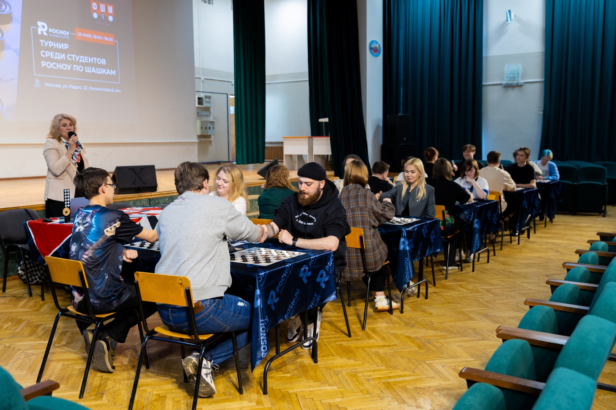 22 мая в Малахитовом зале Российского нового университета (РосНОУ) состоялся турнир по шашкам. Соревнование организовали Федерация шашек Москвы (ФШМ) и проектный офис РосНОУ, его провела президент ФШМ Наталья Геннадьевна Грязнова.