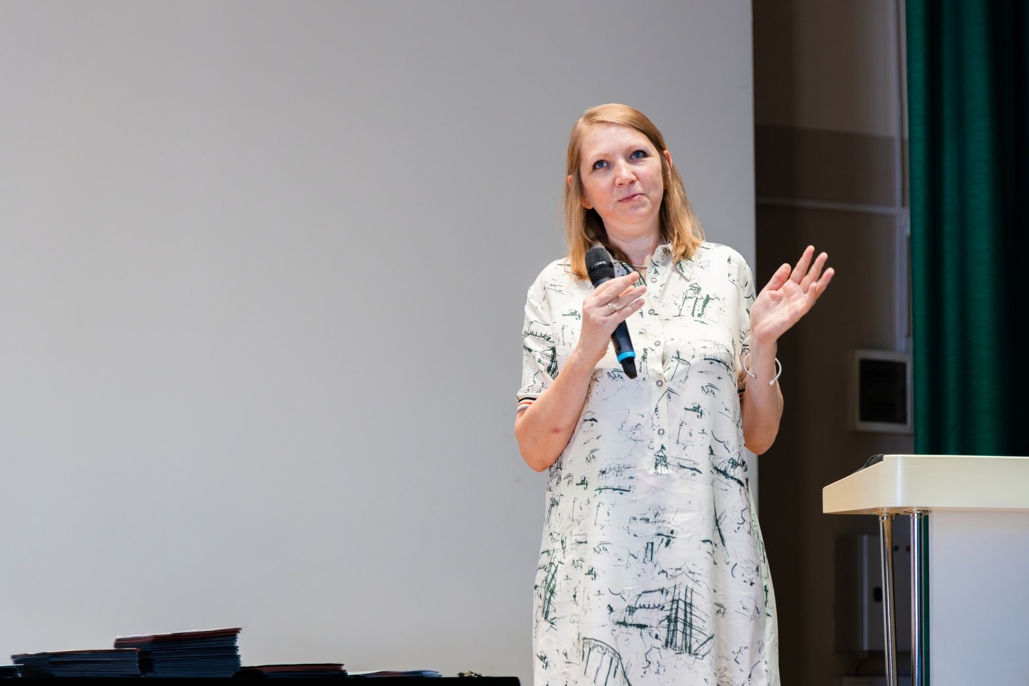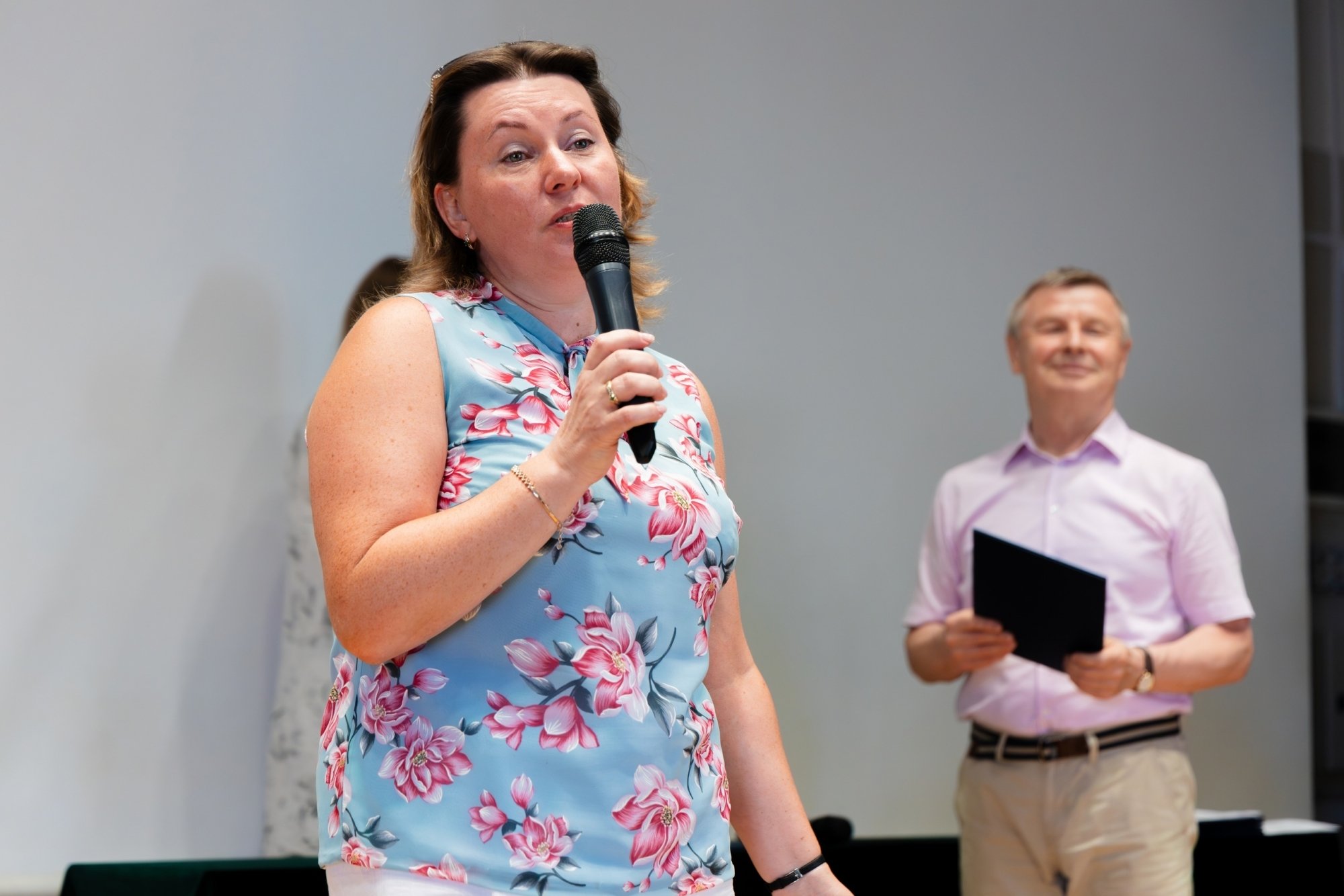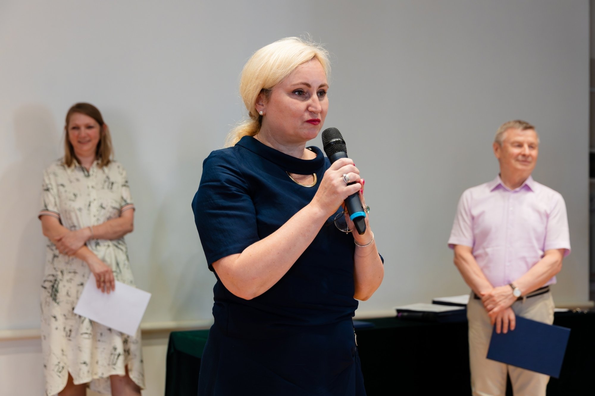 Представьте, что мы расстанемся сегодня, а встретимся в сентябре, уже в новом статусе. И уже не я буду вас подстегивать, а вы будете предлагать: «Юлия Александровна, давайте возьмемся за тот или иной проект!» Я знаю, что многие из вас хотели изменить направление подготовки. Пусть эта мечта сбудется, но вы все равно оставайтесь в учебной среде. Искусственный интеллект наступает на пятки, так что человечеству есть к чему стремиться. А еще выпускной — победа не только студентов, но и их родителей, так что поздравляю всех вас!
