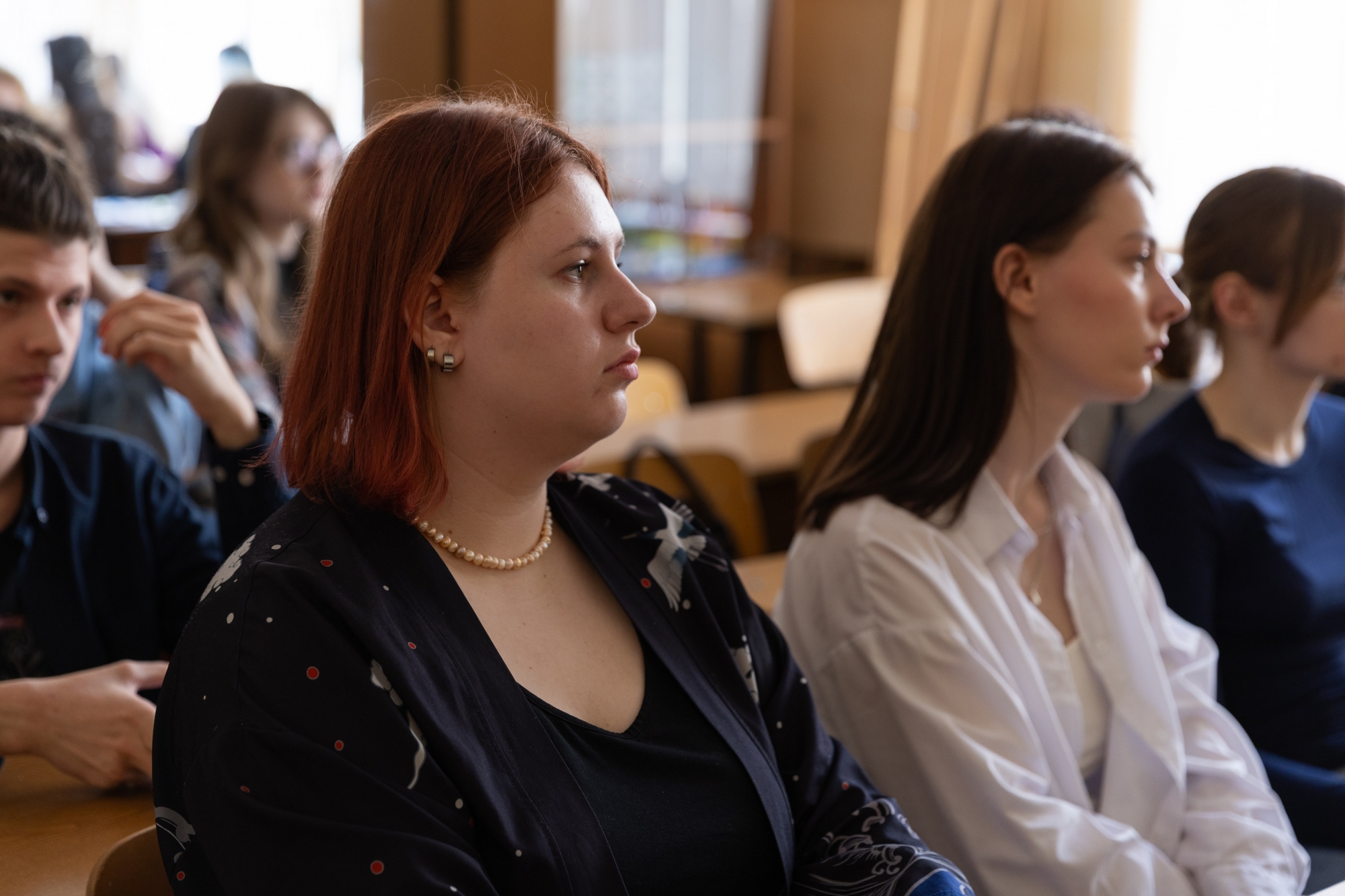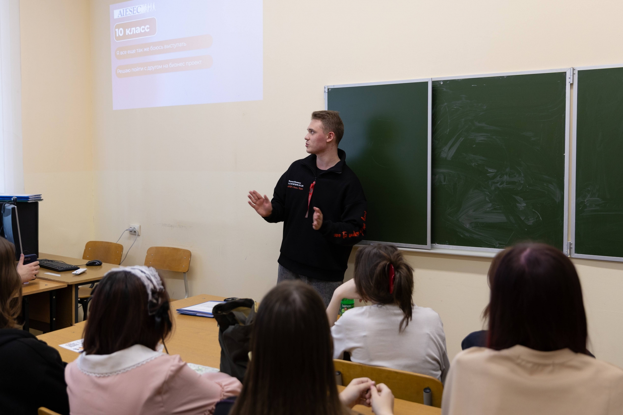Вице-президент департамента маркетинга и связей с общественностью AIESEC Роман Хромов выступил перед студентами с мини-лекцией на тему борьбы со страхом публичных выступлений. Спикер дал практические рекомендации: как справляться с волнением в ситуациях форс-мажора, как общаться с представителями власти, преподавателями и коллективом сверстников, как убеждать аудиторию.