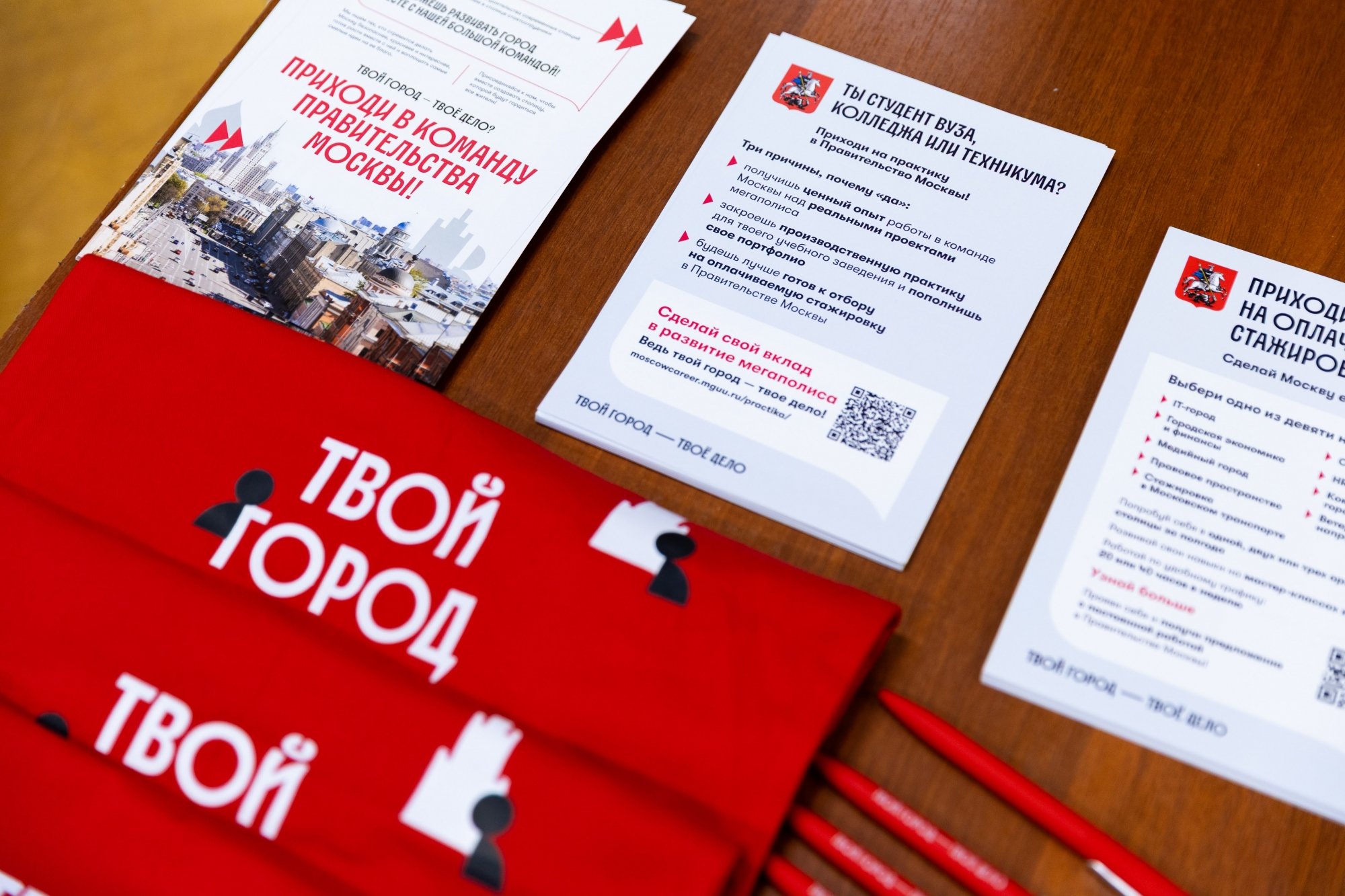 Правительство Москвы также предлагает студентам возможности пройти практику и устроиться на оплачиваемую стажировку в сфере государственного и муниципального управления, менеджмента, экономики и информационных технологий. Программы стажировок доступны четверокурсникам, практики — студентам 1–3 курсов. Студент должен иметь возможность уделять стажировке от 20 часов в неделю. Обязанности зависят от одного из девяти выбранных направлений, например, разработчик пишет программный код и тестирует его, юрист предлагает идеи для усовершенствования муниципального законодательства, а транспортный аналитик — для улучшения маршрутов столицы.