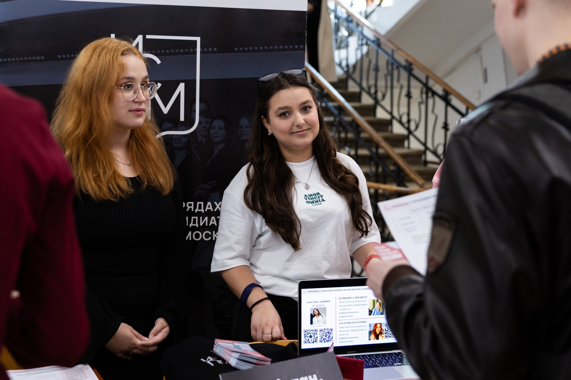 На ярмарку вакансий РосНОУ сотрудники МТС прибыли в поисках менеджеров по работе с клиентами и менеджеров прямых продаж. Условия работы, предлагаемые компанией: гибкий график (4 часа в день), возможность совмещать с учёбой, зарплата от 60 тысяч рублей. Требования к кандидатам — стрессоустойчивость и готовность много общаться с людьми. Опыт работы не обязателен, компания проводит обучение.