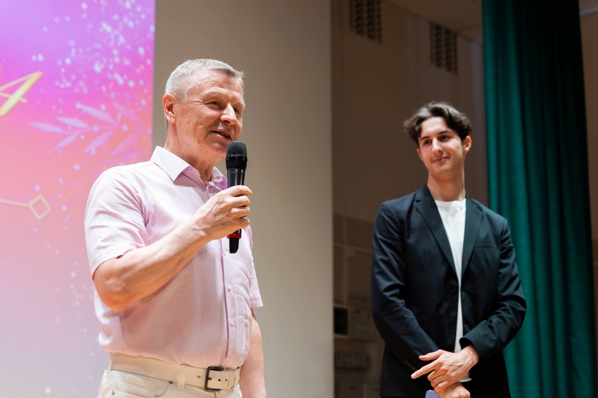 Дорогие выпускники, сегодня вы открываете новую, полную возможностей и перспектив главу вашей жизни. Перед вами открывается много разных дорог. Я хочу, чтобы вы ставили самые амбициозные цели и достигали их, самосовершенствовались и развивались, становились настоящими профессионалами.