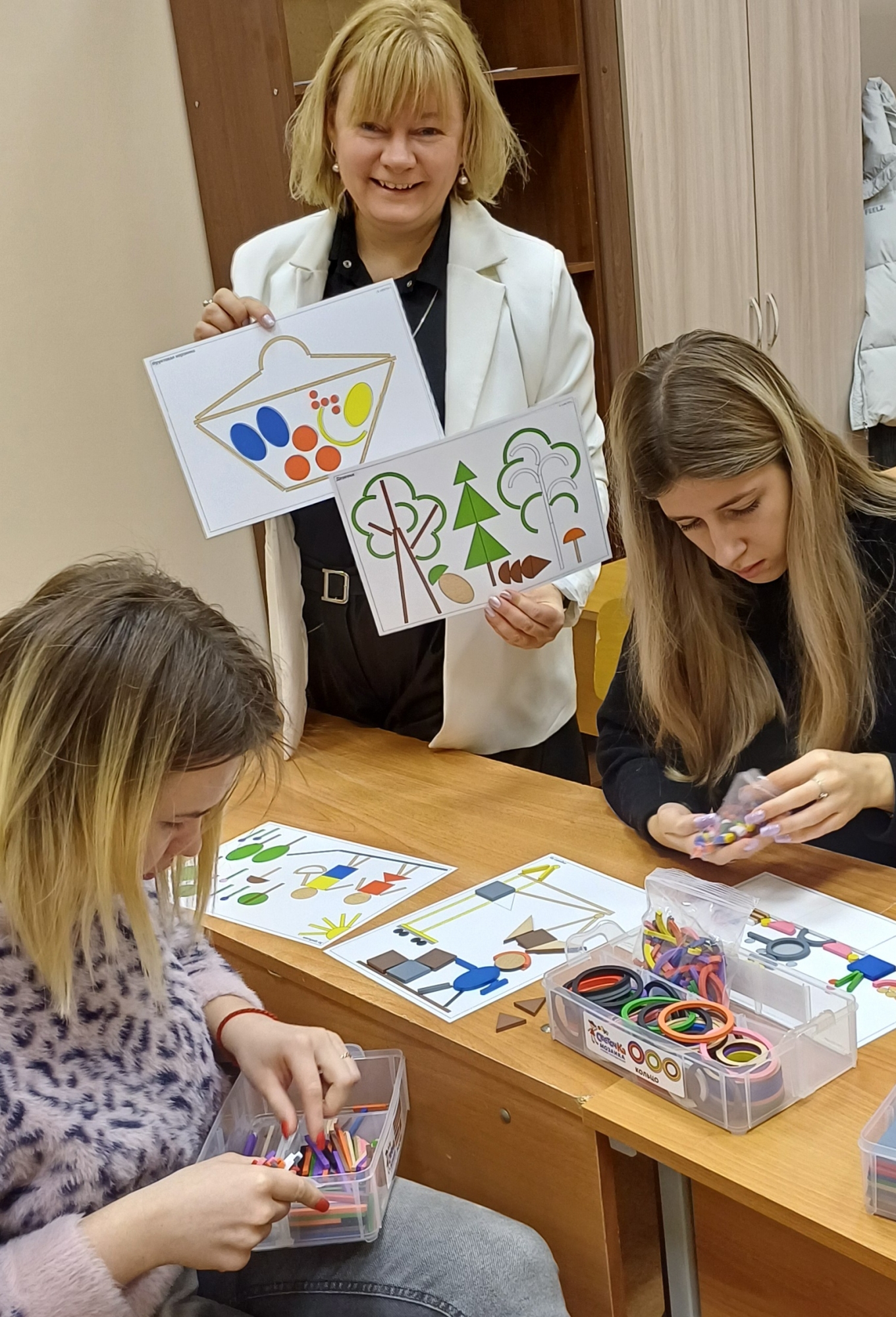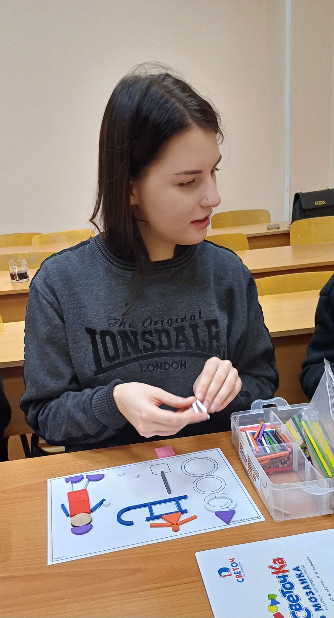 Студенты обучались работе с игровой логопедической мозаикой «СветочКа». Они изучили мозаику, рассмотрели изображения, которые можно собирать, и придумали творческие задания для детей с ограниченными возможностями здоровья.