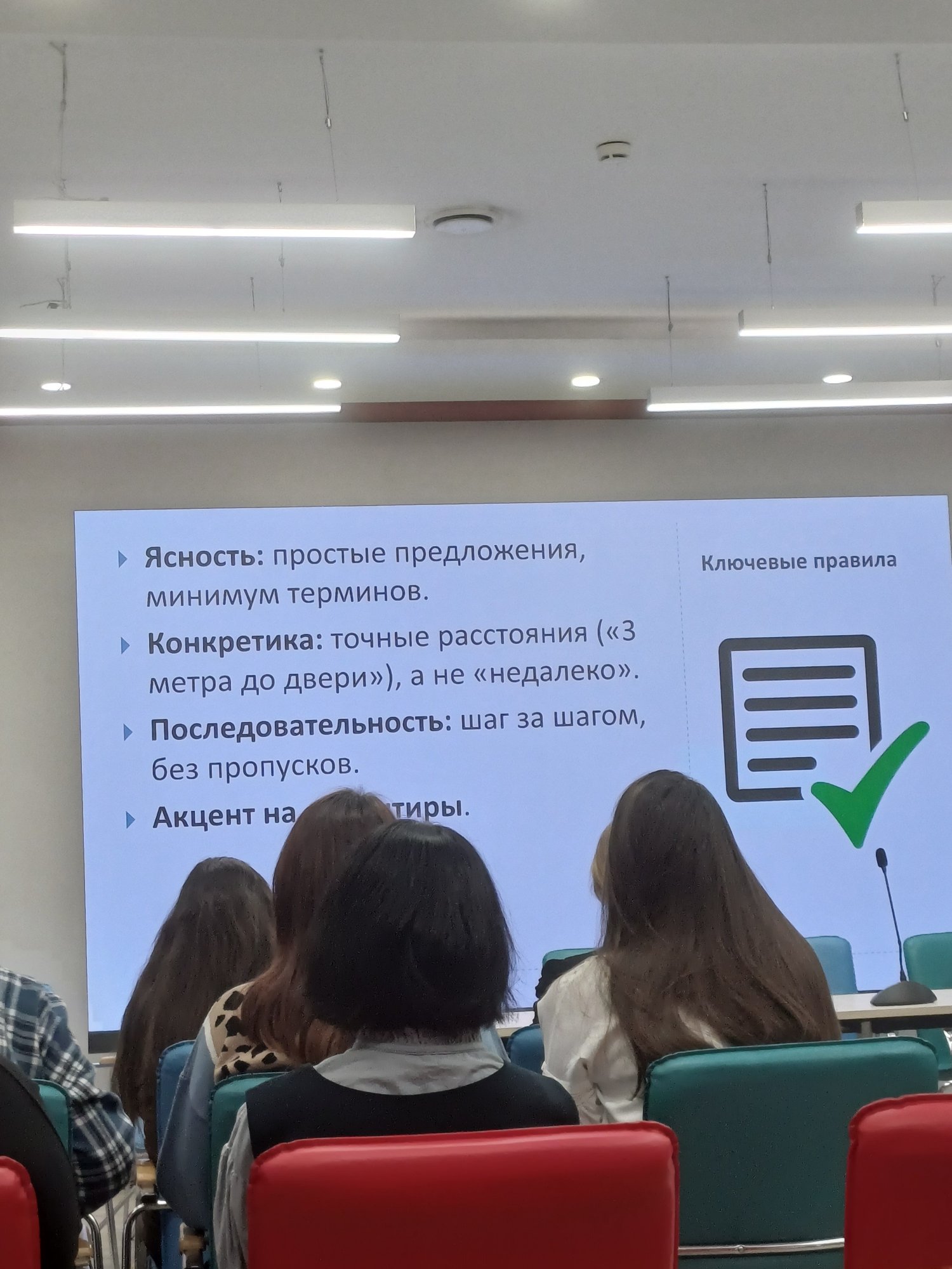 Создание безбарьерной среды и комфортного пространства — одна из главных задач социальной инфраструктуры города. Интеграция человека с нарушением зрения во многом зависит от его способности самостоятельно ориентироваться дома, на работе, на улицах города, и мы должны научить наших студентов-волонтёров осуществлять сопровождение лиц с ограниченными возможностями здоровья.