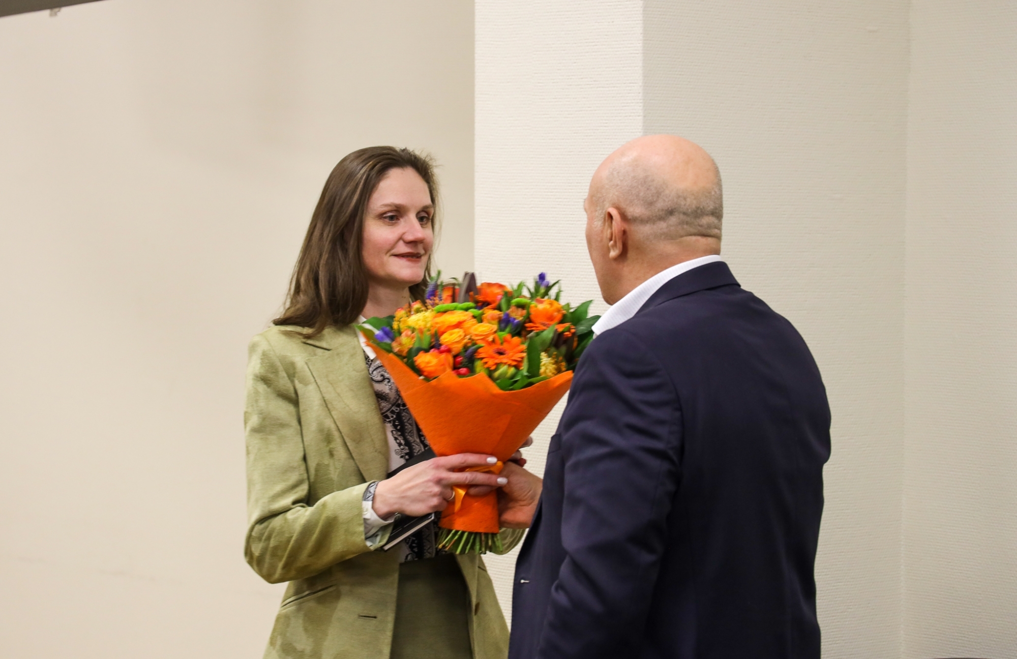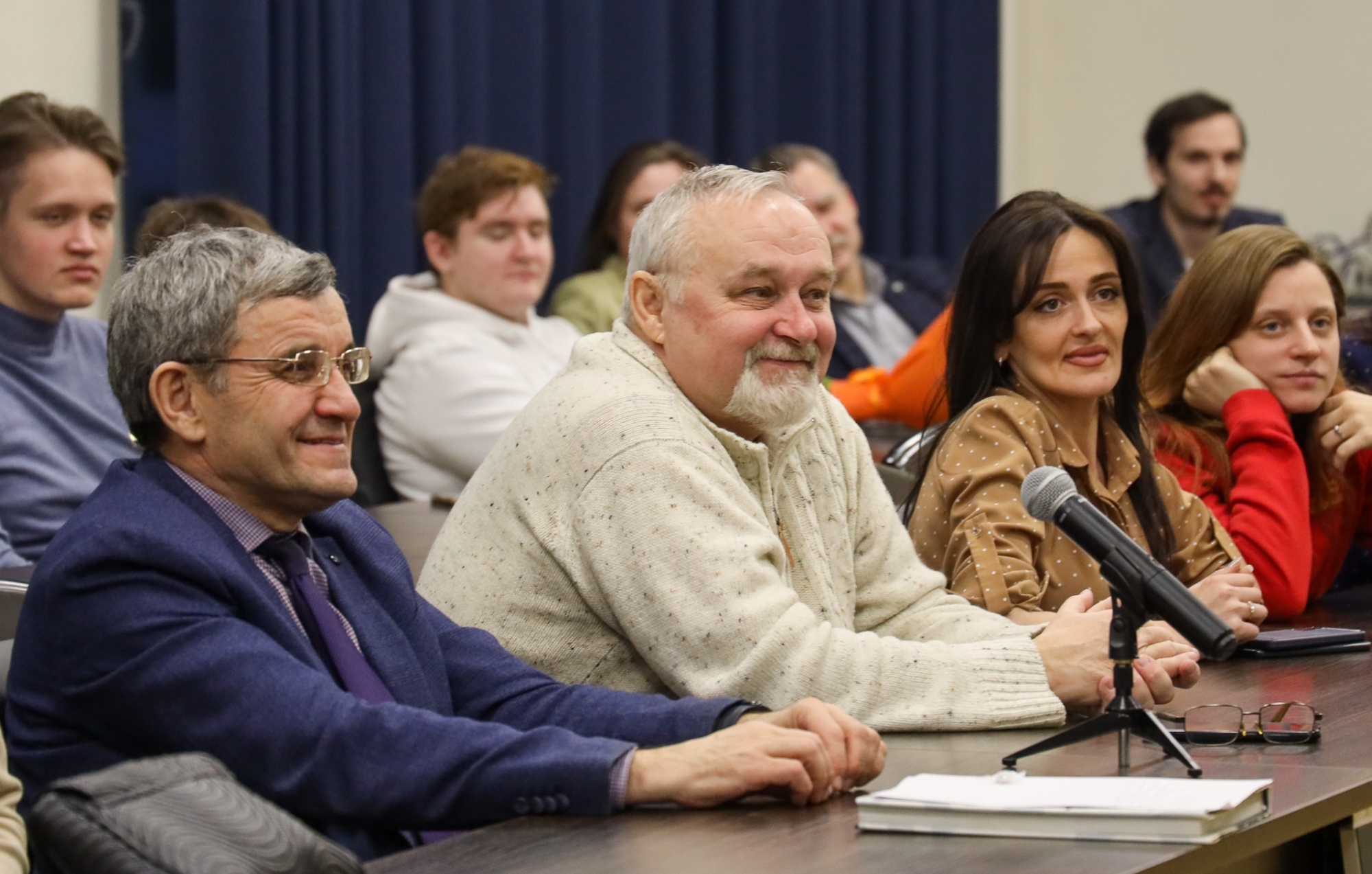 Ветеранам движения, сотрудникам РосНОУ Анатолию Долгушину и Юрию Рогачёву, Сергей Чебан вручил памятные значки. За правильные ответы на вопросы о знаменитых футболистах, с которых и начал свой рассказ о футболе.