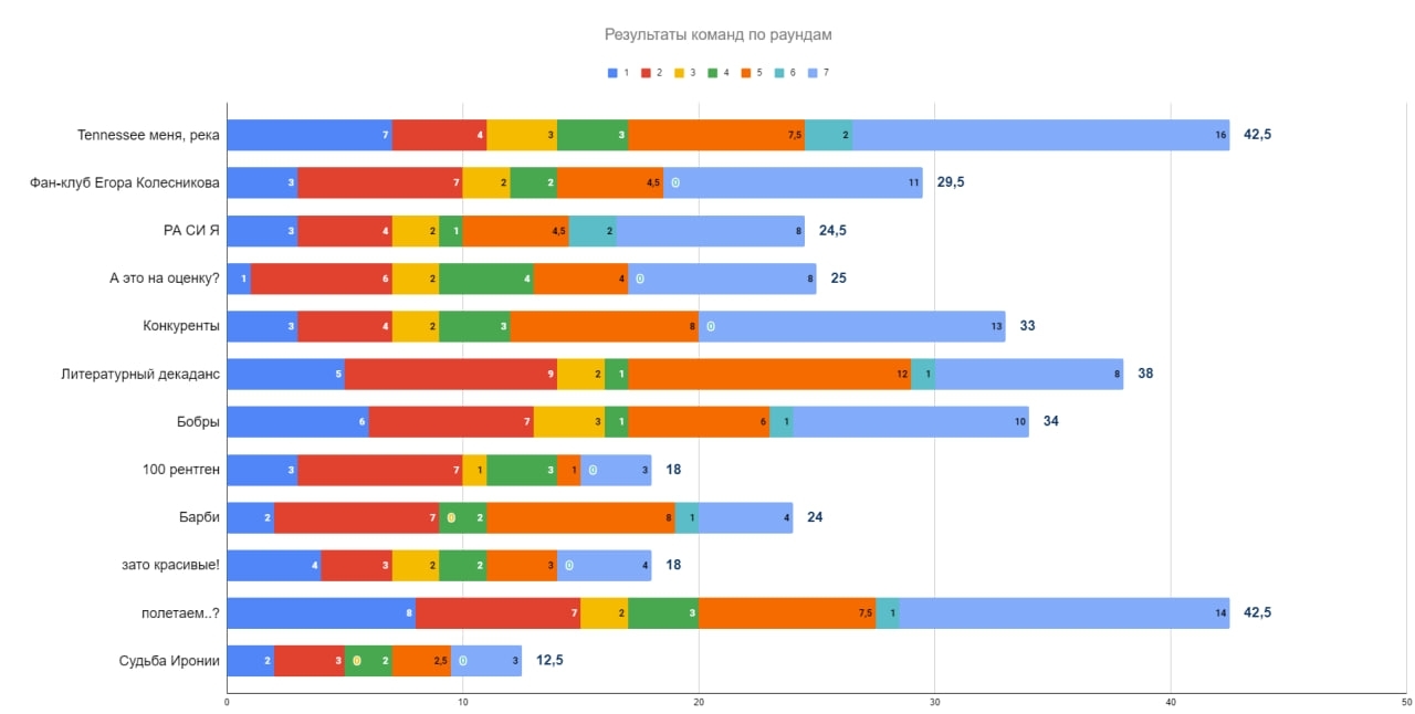 Зрители тоже не сидели без дела. Перед блиц-турниром всем командам раздали специальные листы-тотализаторы, где можно было сделать ставку на один из трёх исходов каждого вопроса: возьмет его сборная студентов, сборная преподавателей или не возьмет никто. Лучше всех с этим справились команды «Tennesse меня, река» от ИСИКТа и «Зато красивые» от ГИ — они угадали по 11 исходов из 18 вопросов.