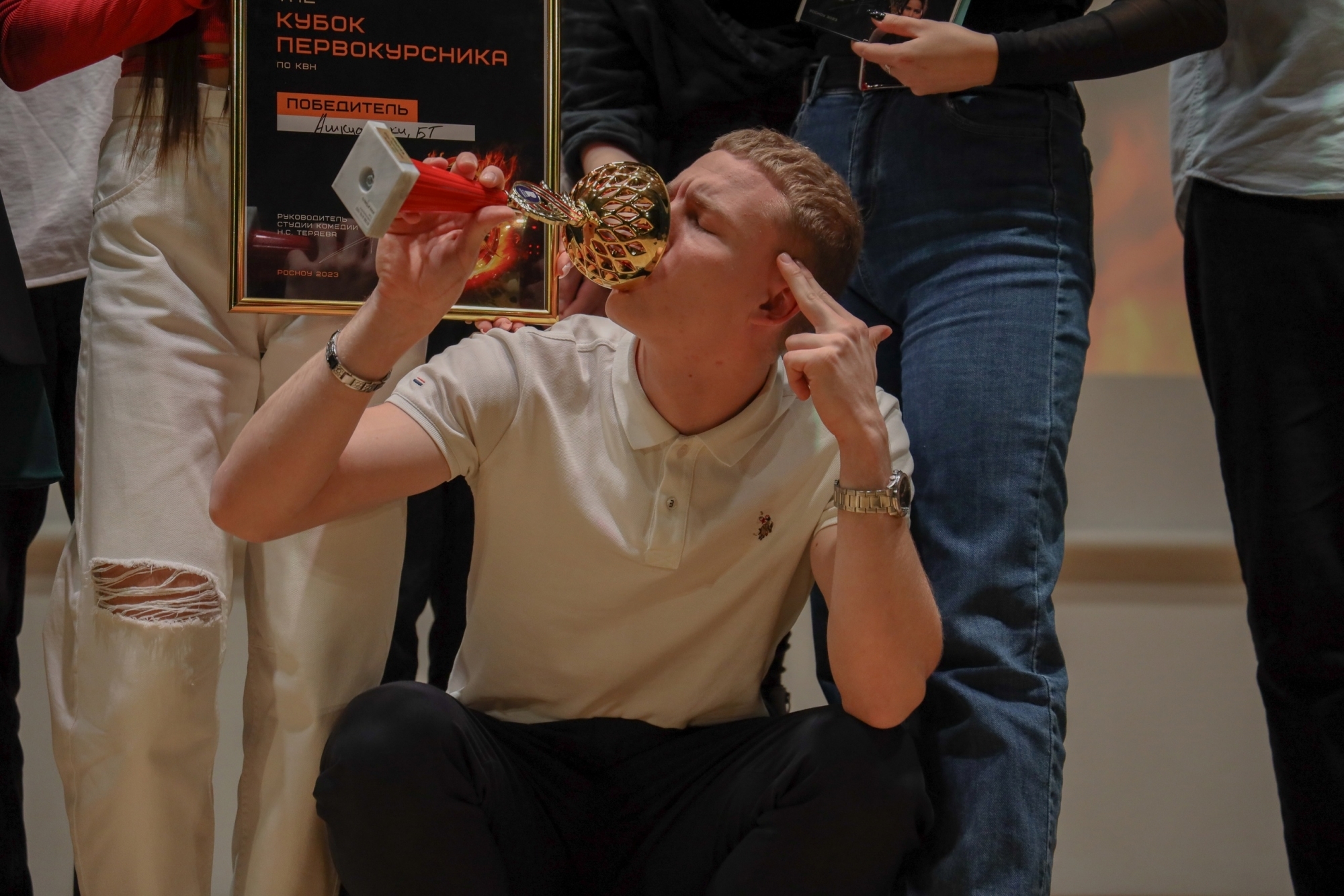 Кубок мне очень понравился. Эмоции зашкаливали. Обидно, конечно, что заняли второе место, но без наград не остались. Очень рад, что получил награду «Лучший актер». Спасибо жюри! Особенно, хочу выразить огромную благодарность своей команде «Таможенники в мундире». Это лучшие ребята, и я надеюсь, что мы и дальше будем играть в КВН таким составом.