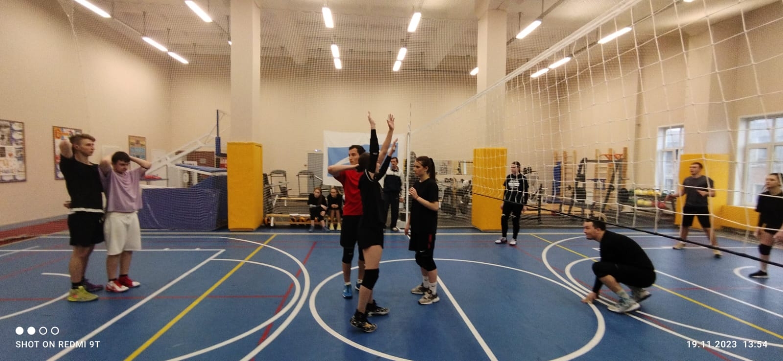 В физкультурном зале РосНОУ прошел кубок ректора по волейболу, посвященный столетию этой игры, с участием сборных институтов и колледжа.