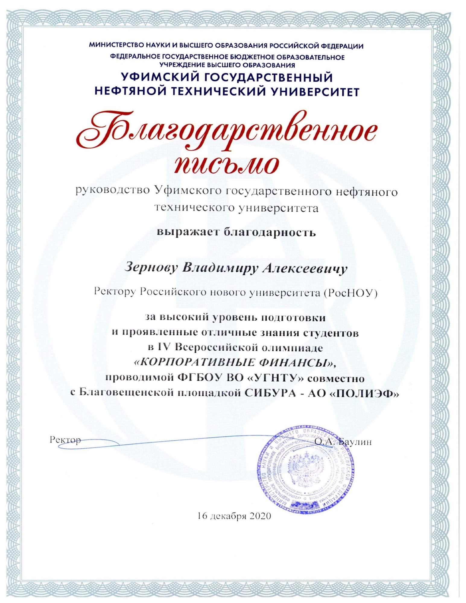 16 декабря 2020 года прошла IV Всероссийская олимпиада «Корпоративные финансы», организованная Уфимским государственным нефтяным техническим университетом совместно с АО «Полиэф» (Благовещенская площадка СИБУР-АО).