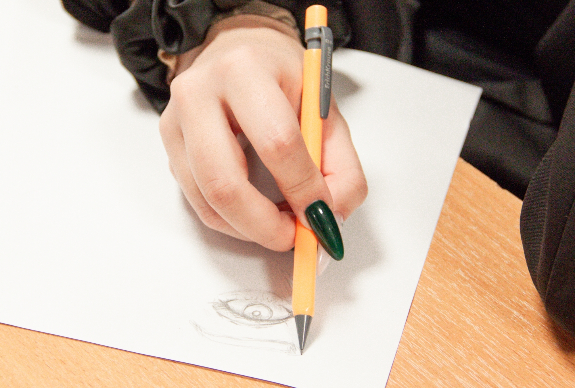 В тот же день преподаватель Александра Павловна Ильина провела уже ставший традиционным мастер-класс по живописи для рекламистов первого и второго курсов. Занятие на тему «Дудлинг и скетчноутинг» Александра Павловна начала с краткого исторического экскурса, после чего участники встречи под руководством талантливого наставника попробовали свои силы в этих техниках рисования. В технике дудлинг студенты выполняли бессознательные рисунки, состоящие из набора простых форм и линий. А с помощью скетчноутинга научились делать графические конспекты с минимумом текста.