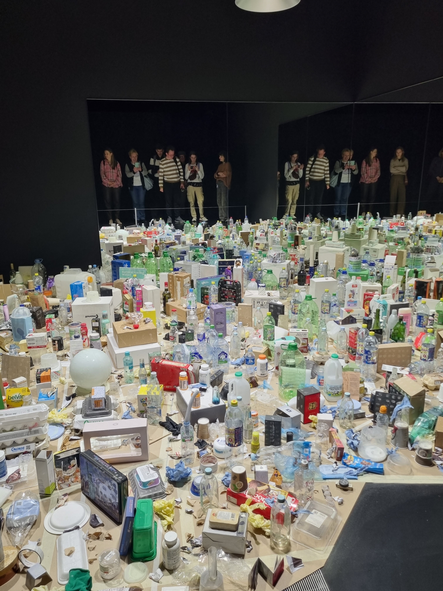 Замечательно, что идея экскурсии исходила от самих студентов! Я предложила им пойти именно в ГЭС-2, потому что люблю искусство авангарда, а «Квадрат и пространство» — одна из самых крутых современных выставок. В некоторые экспонаты можно войти (модель «Домик внутри ГЭС-2»), некоторые оказываются обманкой авторов (инсталляция «Случай в музее или выставка на воде»), некоторые меняют облик при разном освещении (например, инсталляция «Метрополис», в темноте напоминающая огни ночного города, а при ярком освещении оказывается мусорной свалкой).