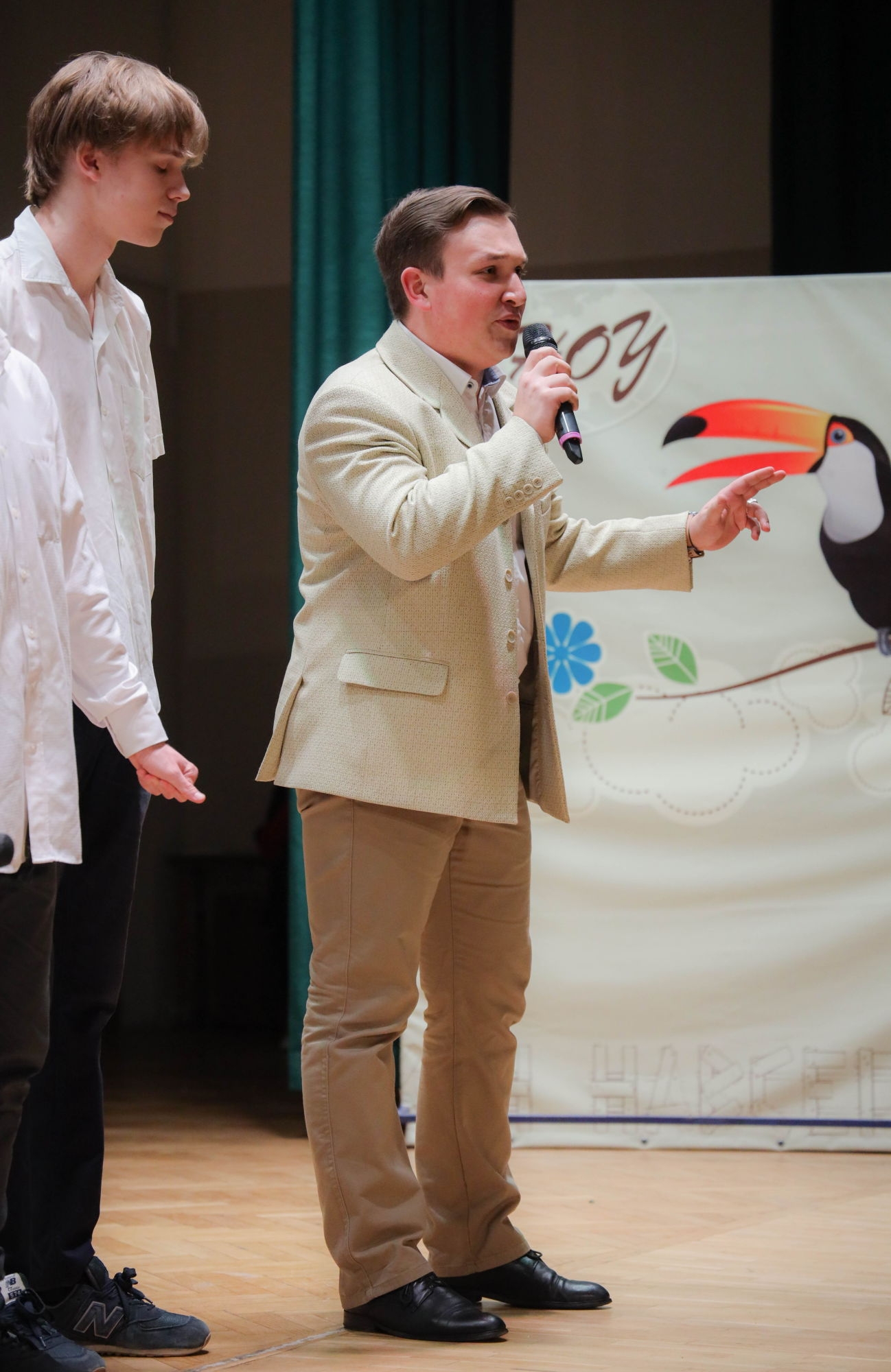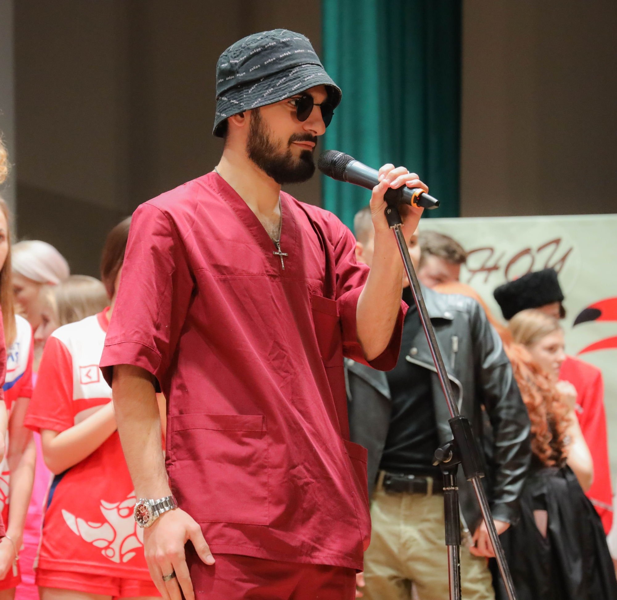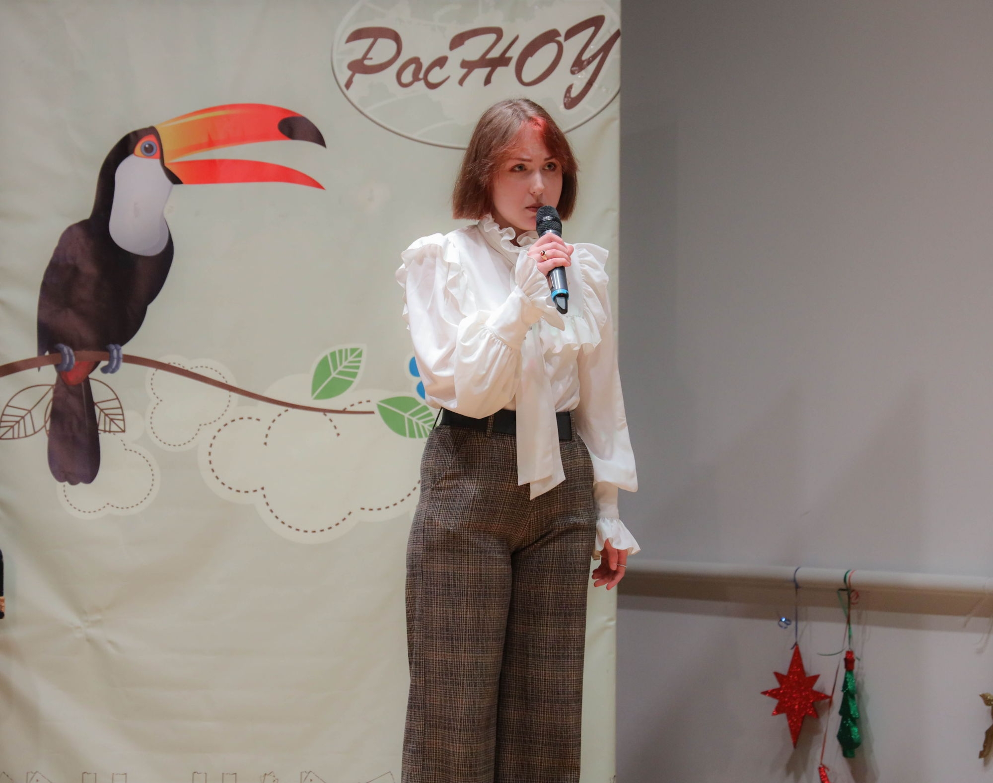 Ведущая вечера — Тая Федянина, участница премьер-лиги КВН в составе команды «Столица закатов» впервые вела КВН в стенах РосНОУ и достойно справилась с этой ролью.