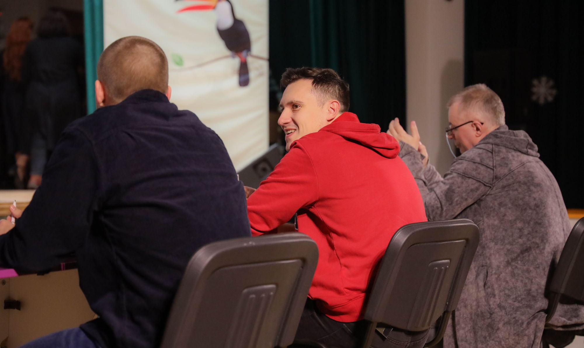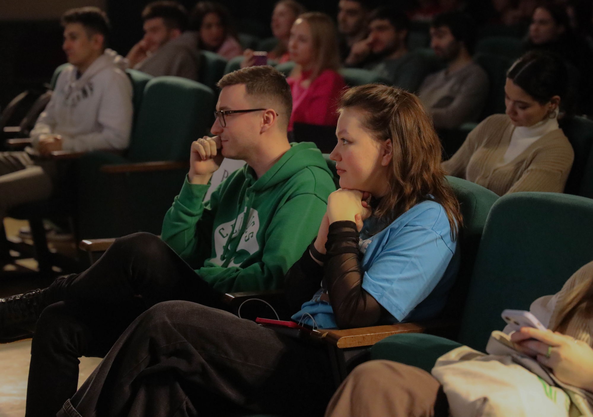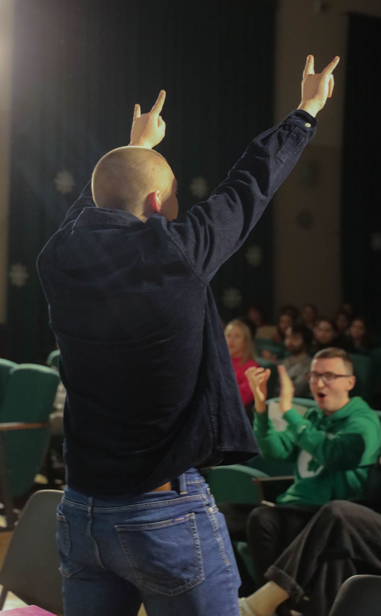 Зал встречал тепло все команды, в особенности новичков, которые впервые выходили на сцену. Атмосфера была веселой и праздничной на протяжении всей игры.