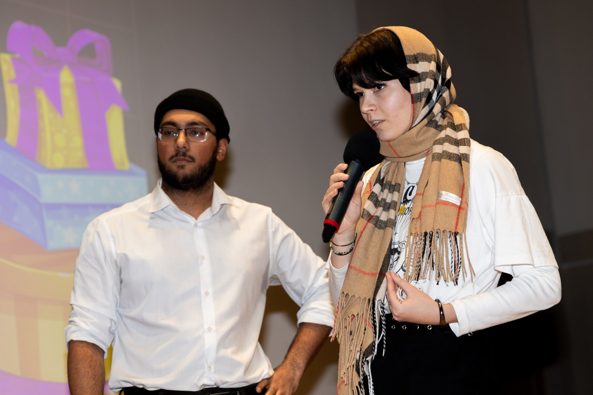 Игру провела студентка 4 курса Института экономики, управления и финансов, участница команды КВН «Чародейки» (РосНОУ) Кристина Кулешова.