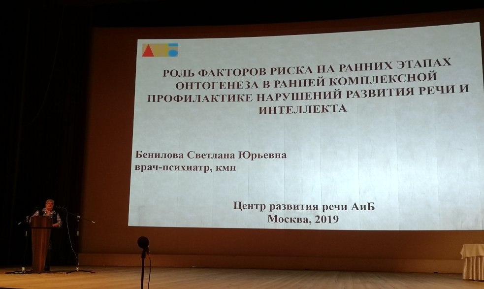 Бенилова С. Ю. (Москва), врач- психиатр, к. м. н.; «Роль факторов риска на ранних этапах онтогенеза в ранней комплексной профилактике нарушений развития речи и интеллекта»;