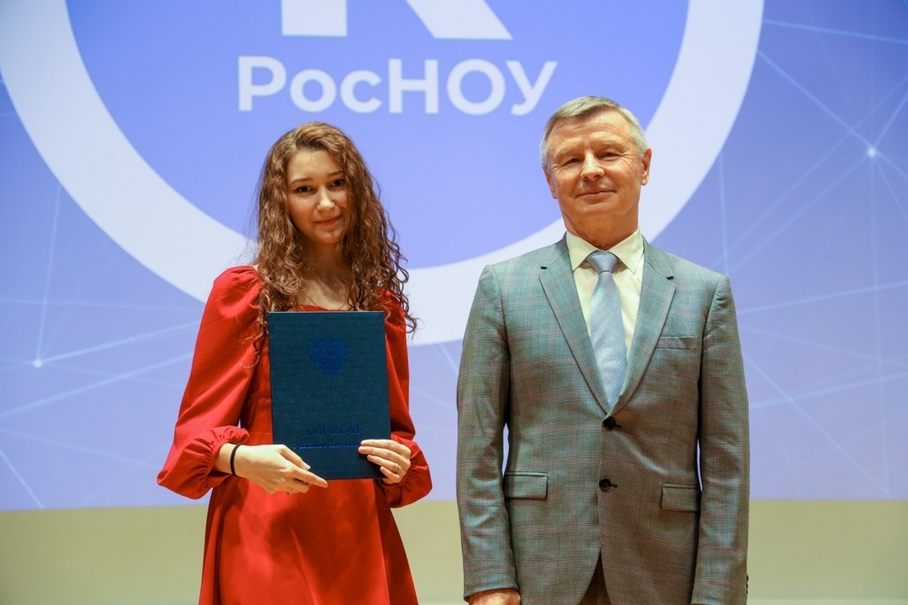 Исполнительный директор передала слово ректору РосНОУ Владимиру Зернову. Он поздравил выпускников с вступлением в новый этап жизни, бакалаврам предложил продолжить обучение в магистратуре, магистров пригласил в аспирантуру. Но с условием: «чтобы ваши стартапы были на „пятёрку“ с двумя плюсами!». С особым чувством ректор вручил выпускникам дипломы с отличием.