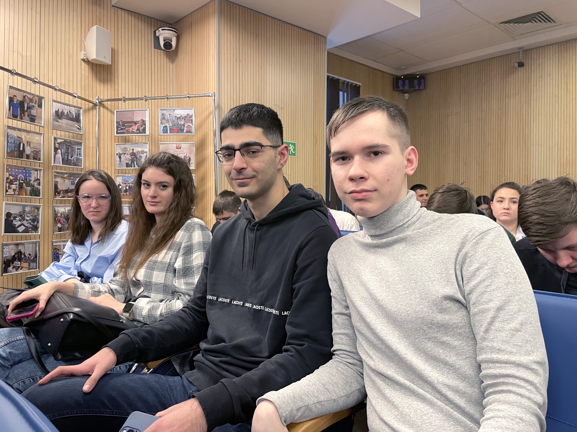 Перед слушателями выступили начальник и советник отдела правового просвещения и взаимодействия с научно-образовательными организациями АУПЧ в РФ Лаптева Ирина Владимировна и Смирнова Светлана Николаевна. Они рассказали про историю, функционал, полномочия президента РФ и показали документальный фильм о формировании института президентства в России.