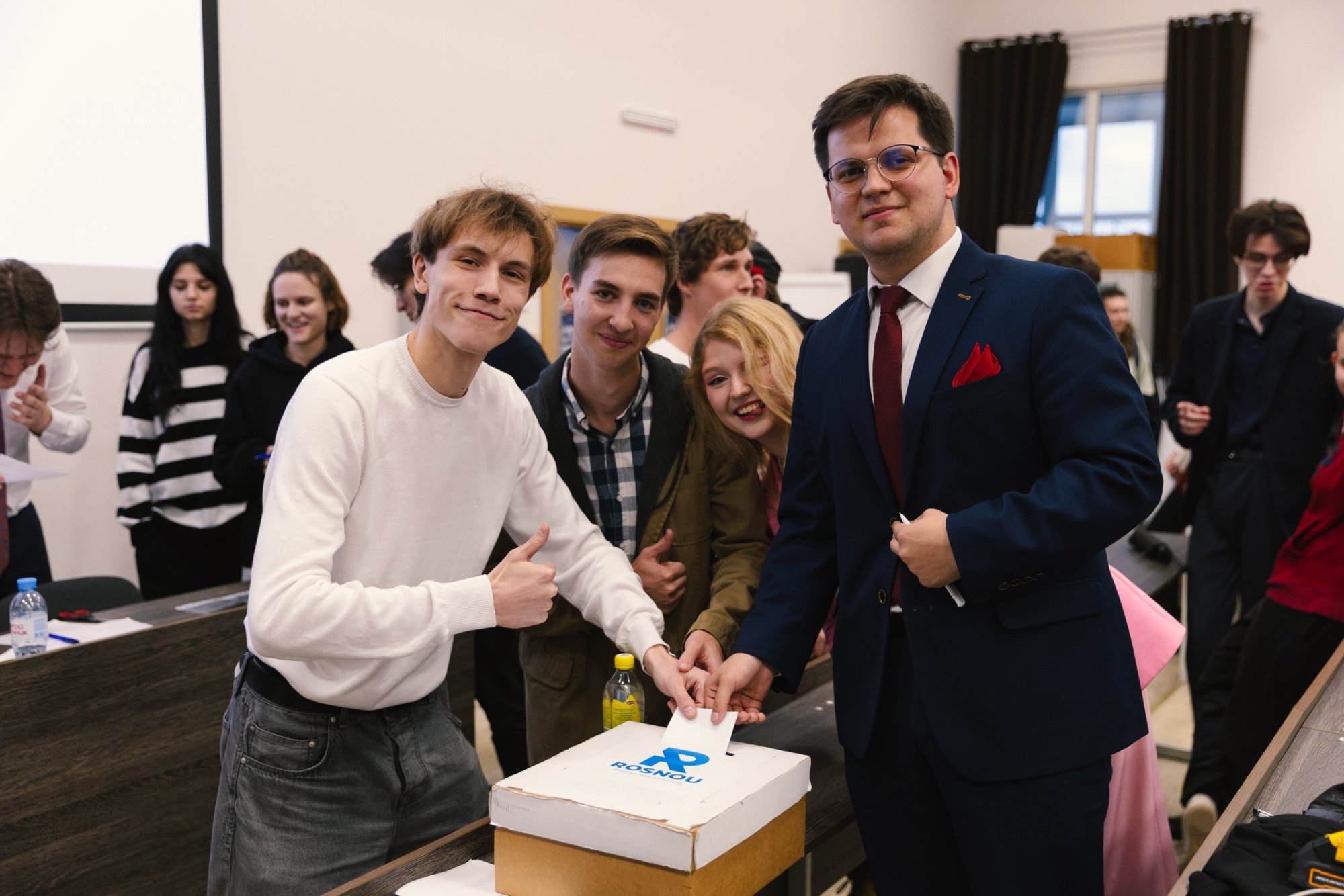 В соответствии с положением о выборах, избирателями имеют право быть все члены студенческого совета РосНОУ, студенты, выдвигаемые от других студенческих организаций и объединений, а также старосты, которые выдвигаются от институтов. Каждая организация, объединение и институт могли выдвинуть по пять избирателей.