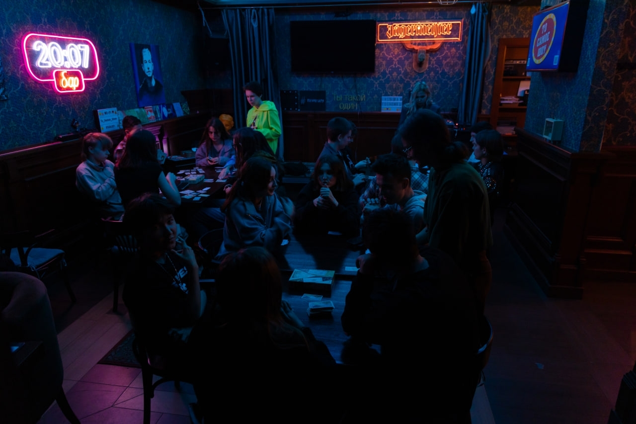 Игру провели сотрудницы проектного офиса РосНОУ, старшие гейммейкеры Ася Герасимова и Полина Гейкер и гейммейкер клуба интеллектуальных и настольных игр РосНОУ Дарья Бородаева, а победила команда «Фан-клуб Егора Колесникова», получившая пиццу от кафе «Моспицца.РФ на Бауманке» в подарок.