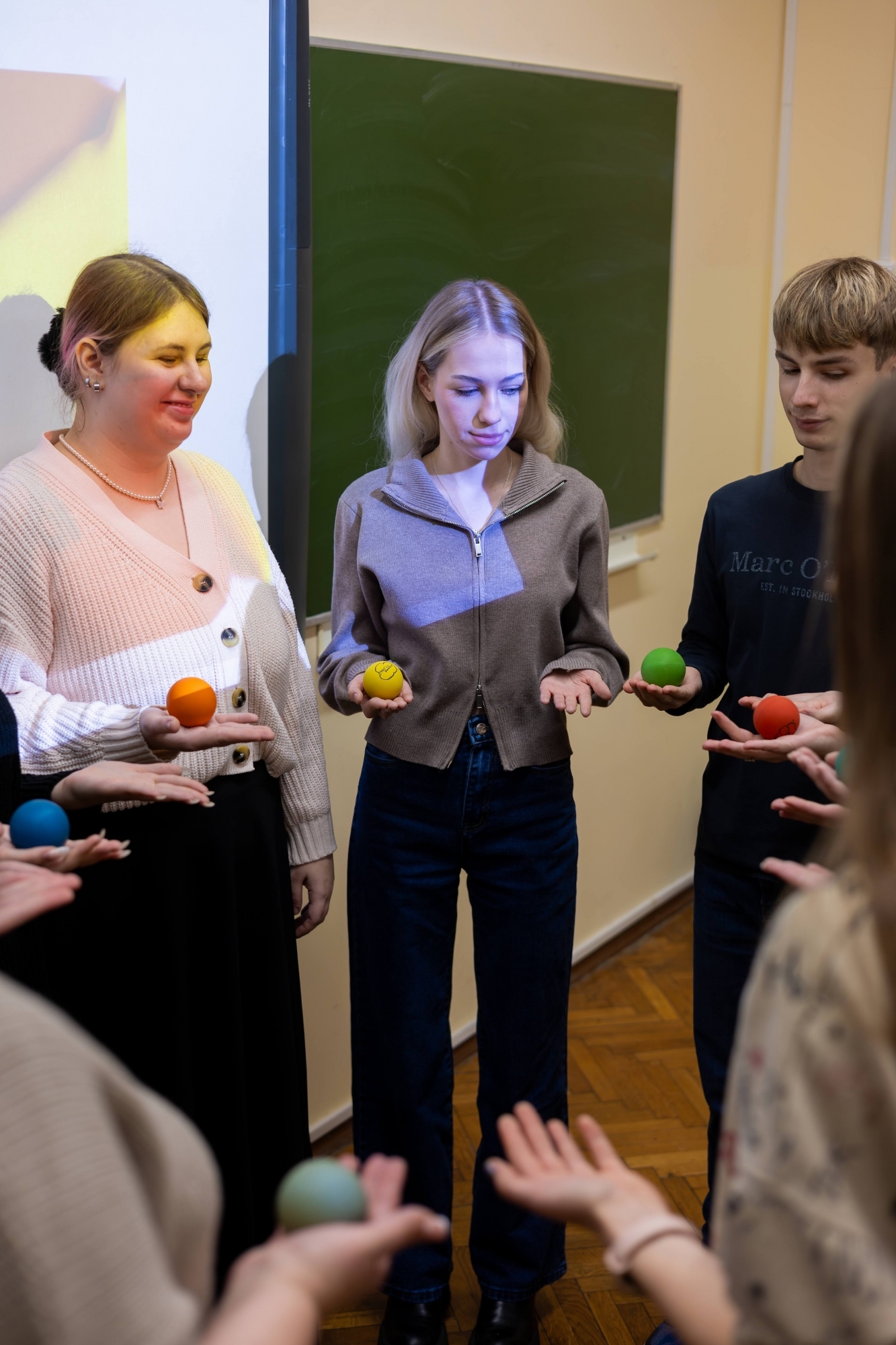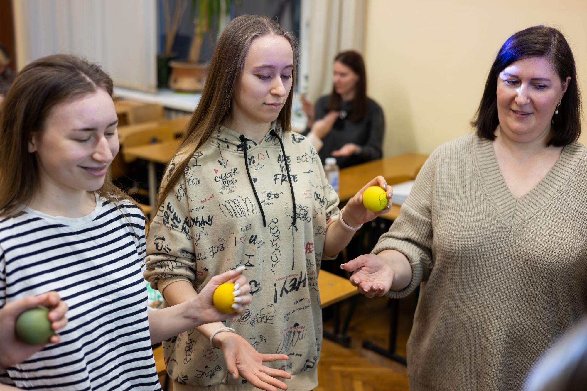Кинезитерапия — это лечение посредством движения с использованием механизмов его регуляции. Она помогает прорабатывать психологические проблемы через тело. На мастер-классе мы поработали с рефлексами, боковым зрением, мелкой моторикой, студенты учились техникам, которые помогут им развиваться в профессиональной деятельности в контакте с клиентами.
